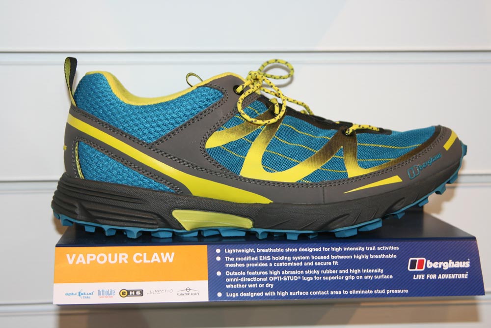 Finally, the new Vapour Claw trail-running shoe is a full-on off-road running and race shoe which Berghaus says has been developed for races like the multi-day Attacama Crossing or the imminent Dragon’s Back Race. It features semi-curved sports lasting, a OPTI-STUD® Trail sole with grippy omni-directional 5mm lugs and a modified ergonomic holding system for a customised, secure fit, it says here.