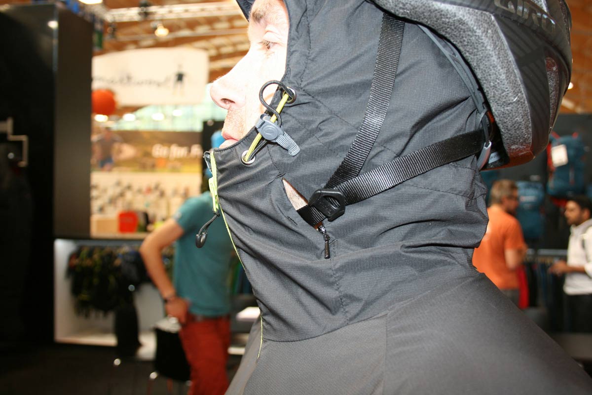 There’s some clever stuff too. The liner’s reversed in the sleeves to prevent snagging, cut is designed for technical mountain stuff with articulated arms and there’s a full technical, under-helmet hood that dodges the tiresome chin-fit problem by using two small slots so the helmet straps run inside the chin-guard. Lots more besides and a price of £150. Claimed weight is 542g.