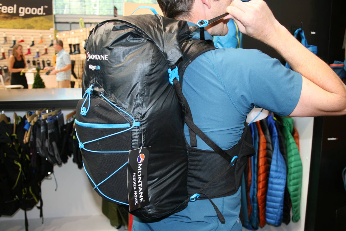 And now for something competely different. The Dragon 20 is a so-called ‘race vest’, basically a lightweight pack with a stretchy, form-fitting body harness. It’s not a new idea, several adventure race specialist brands have been there already, but it suits Montane’s fast and light ethos.