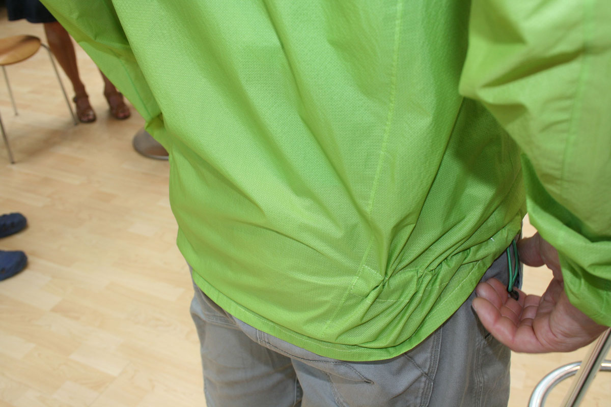 The Micron Jacket looks like a cracking lightweight option with just the one pocket, integrated vents under the arms – sort of perforations with a protective storm-flap and a proper hood with a wired peak. It uses ME’s slimmed down Active Fit and has some nice details including an adjustable hem which has been carefully designed with a drawcord which sits in the right place to minimise any riding up.