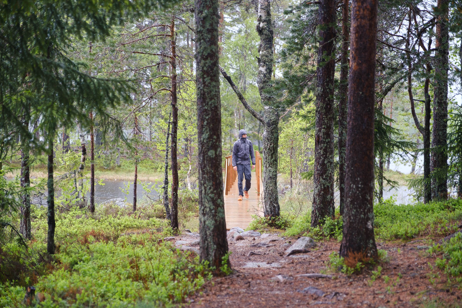 In summer, it’s green and quite verdant, with a thick blanket of cloudberry bushes coating the landscape, paddle-able lakes and gurgling brooks everywhere. At this time of year, many hikers pass through each day on their way along the Southern Kungsleden, a 360km trail that has its southern terminus just south of the national park.