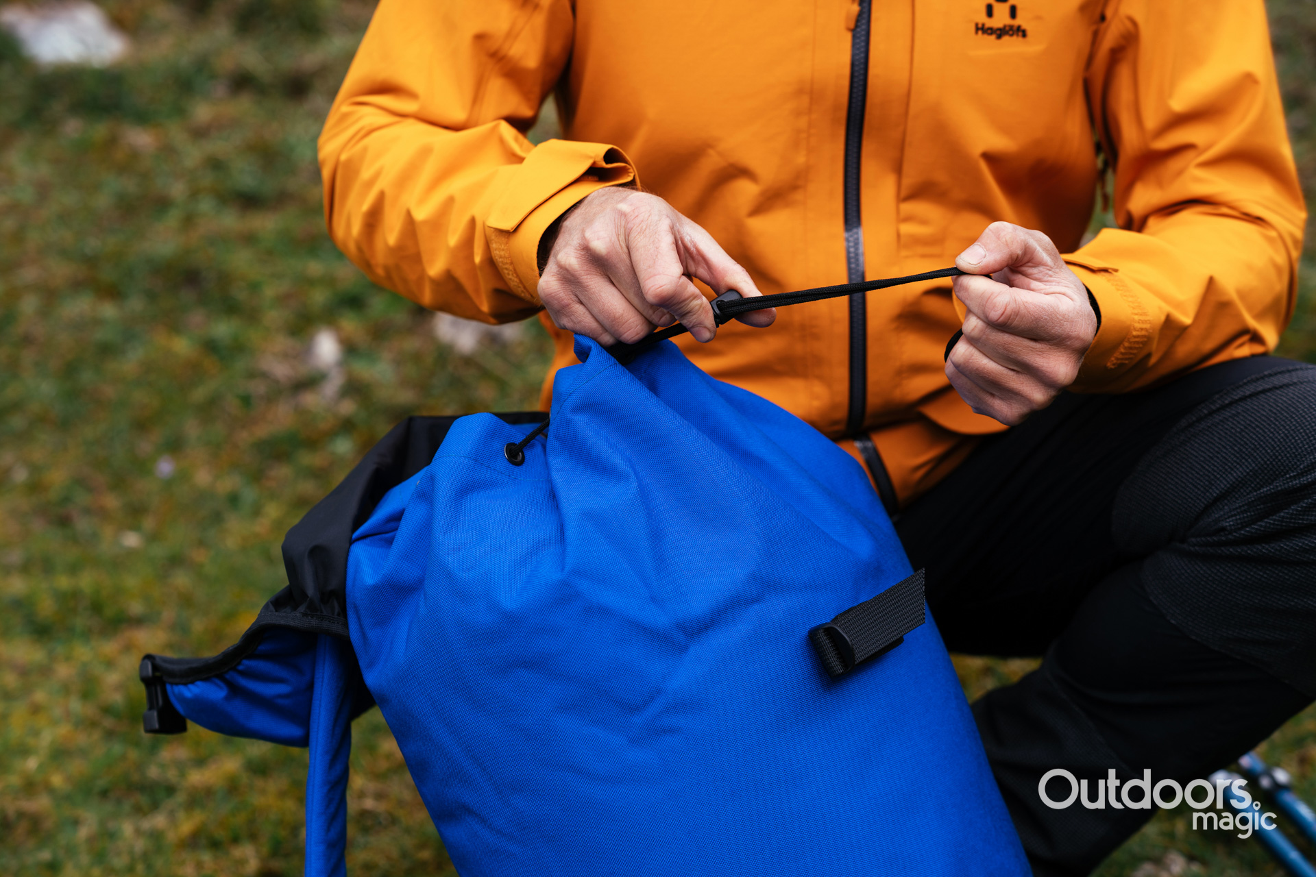 This also has a lovely big main opening which closes with a drawcord. You can easily open it right up and have access to your kit straight away without having to dig around awkwardly. For any smaller stuff like your powerpack or compass you can just stick them in the little zipped pocket under the lid.