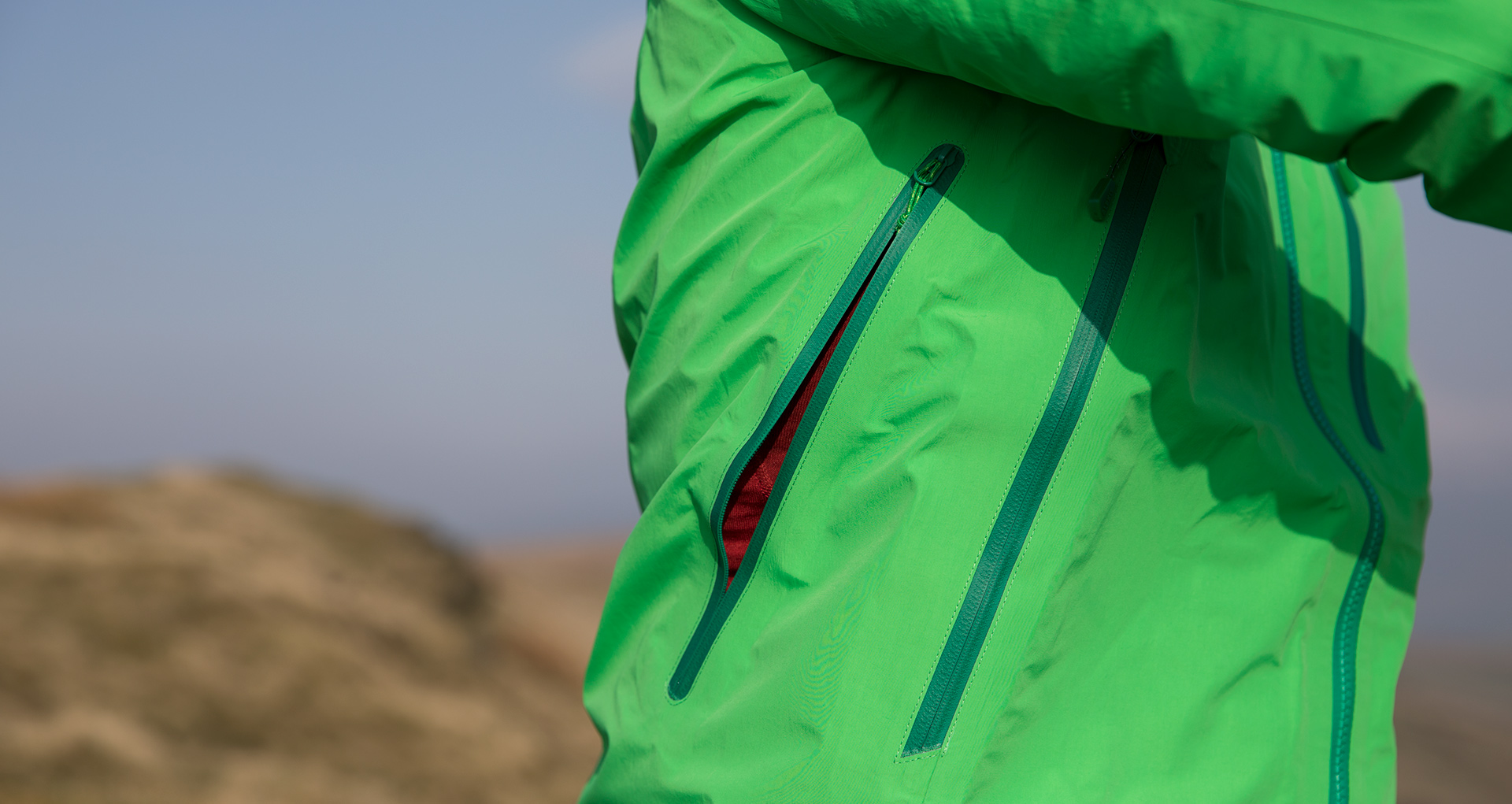 Map-sized and harness-friendly hand-pockets also house the stealth hem-cord adjusters. Release is by Cohaesive cord-grips embedded in the hem – image: Harsharn Gill