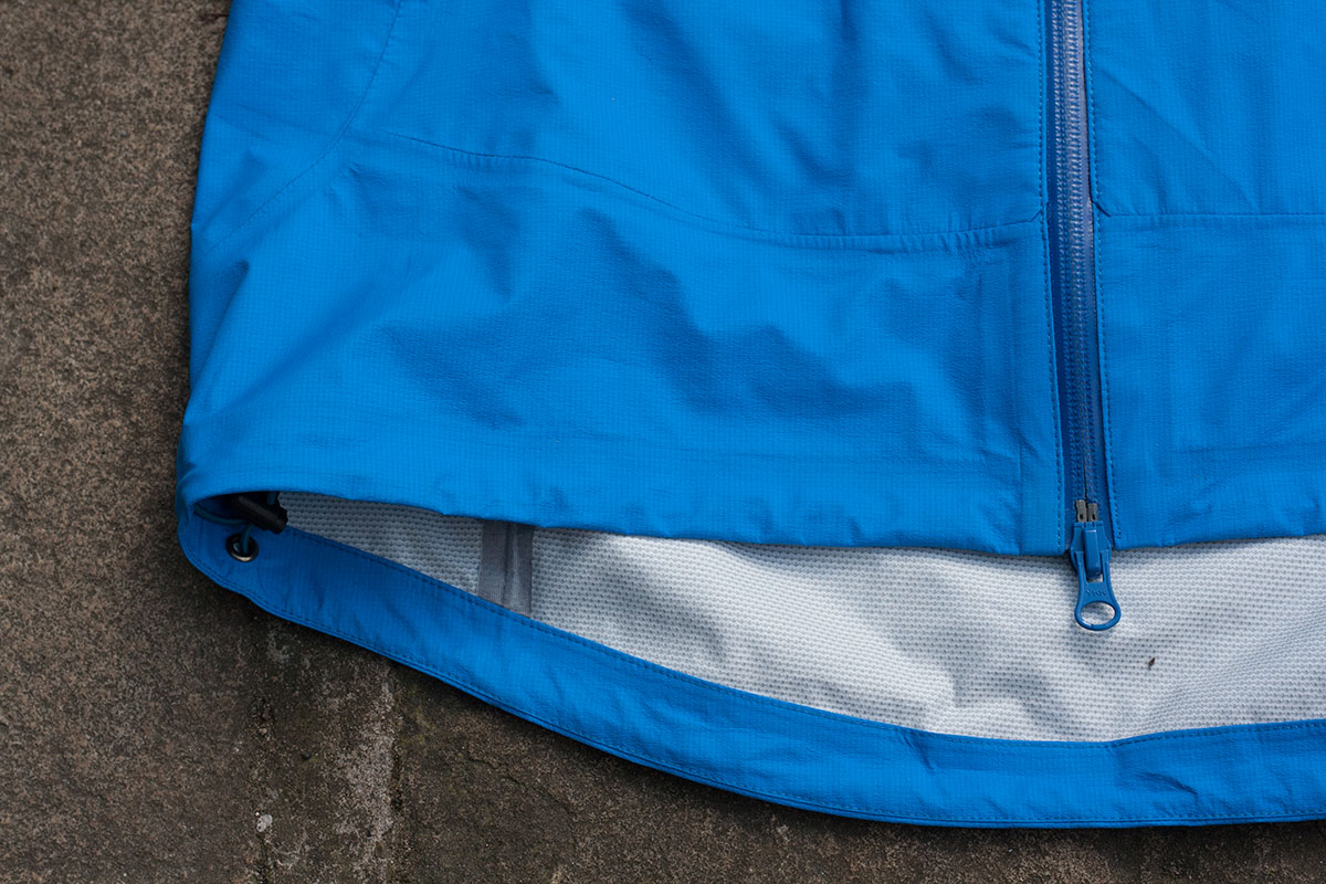 Not only does the fabric seem impressively state of the art, but all the design features and details you’d expect on a quality technical jacket are present and correct: we’ve already covered the wired and stiffened hood peak, you also get full adjustability all round, neat zipper garages, a handy drop-tail cut for premium butt protection and those map-sized hand-pockets are part mesh lined, so you can use them for additional venting.