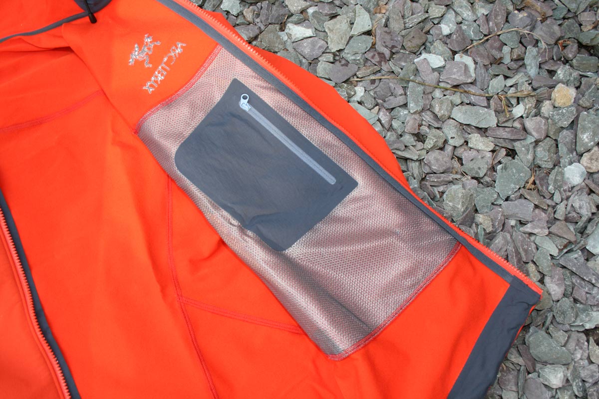 There’s a drop-tail to offer protection for biking or alpine use, two harness-clearing, venting, hand-warmer pockets and an internal zipped chest pocket too. The detailing’s lovely in a proper thorough way: the adjustable hem cord, for example, is housed in a laminated rather than stitched tunnel, the cuffs have a neat stretchy insert panel and the front zip is flapped and chin guarded for added protection.