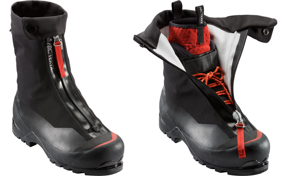 On top of that is the outer gaiter made from a 0.6mm TPU film laminated to another layer of Gore-Tex fabric and secured by a T-ZIP WaterTight front zipper to keep snow and rain at bay.