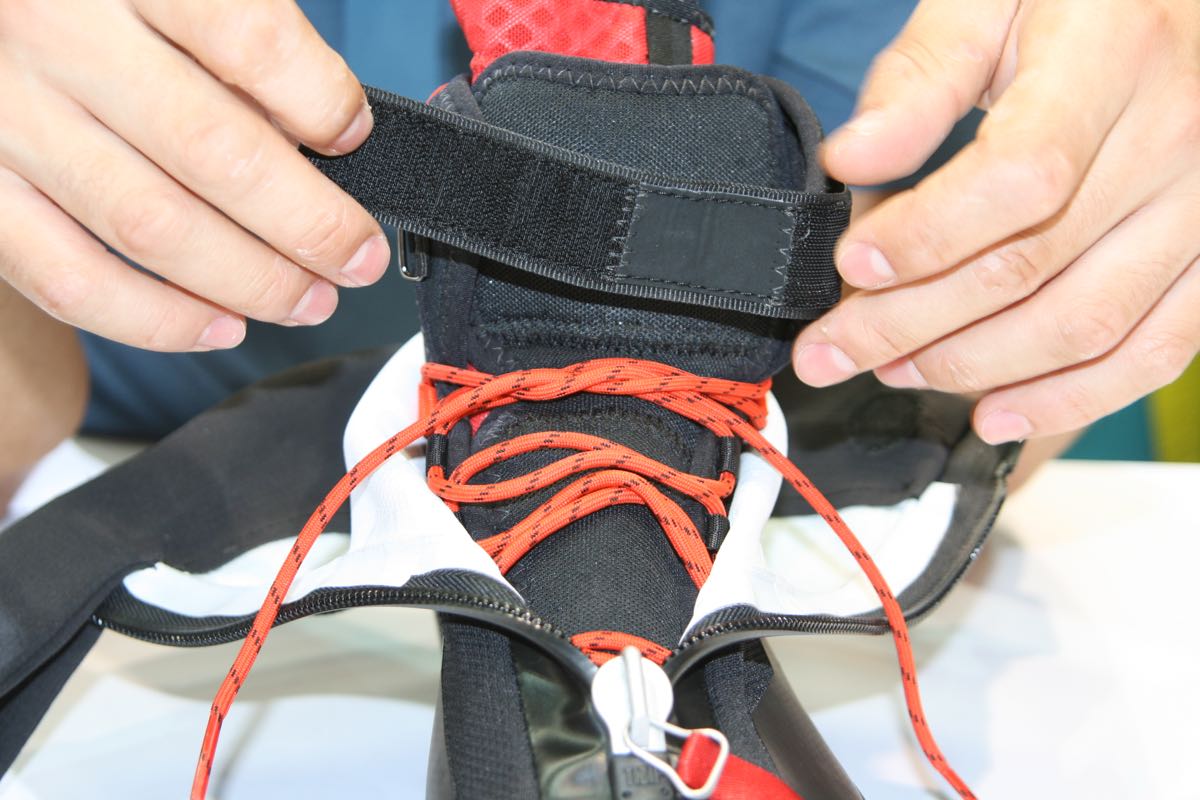 Over the top of that goes a PE Inner-shell made from 4mm PE foam for added warmth – again it’s hydrophobic and dries fast. The lower part uses conventional laces, while the cuff is Velcro fastened. That, if you’ve used high-cut mountaineering boots, is genius.