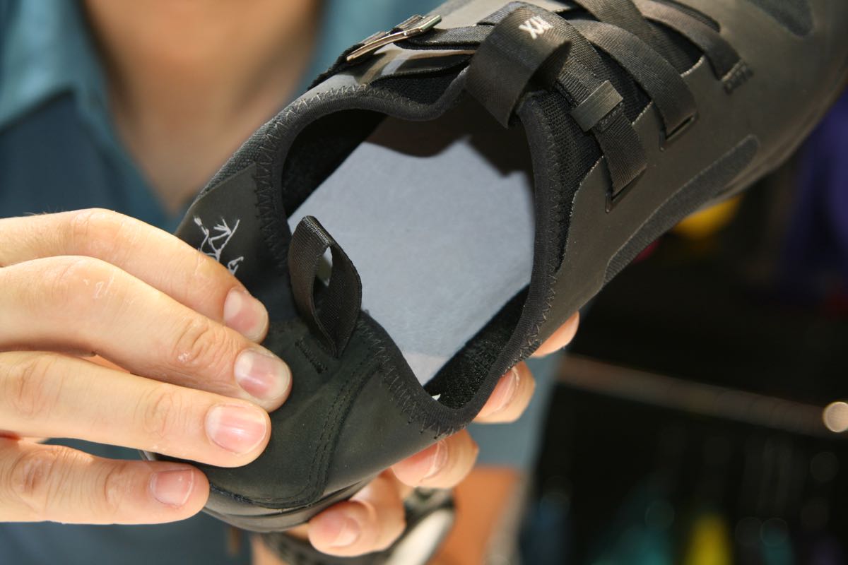 The inner liner boot has its roots in last year’s Acrux and Bora approach shoes and mids. It’s made from perforated PE foam with a Gore-Tex liner. The materials are hydrophobic so it dries fast and the lower section uses 4mm PE foam for added insulation. The sole is rubberised for hut use as well. Neat stuff. As with the shoes, the stretchy foam moulds to your foot to give what Arc’teryx calls ‘adaptive fit’.