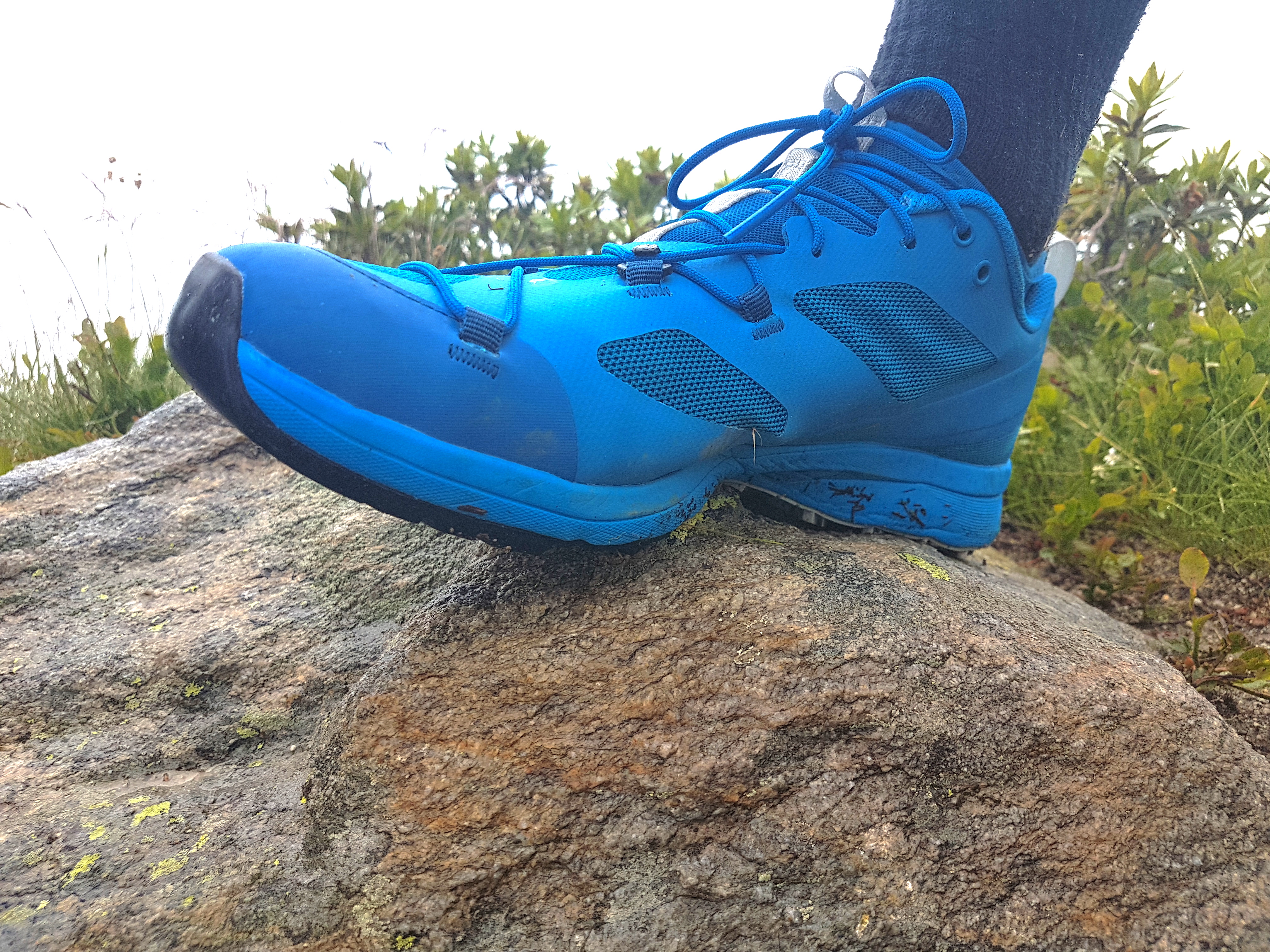 There are features that will appeal to trail runners, like the 3.5mm-deep arrow-shaped lugs and the neat internal stretch liner that keeps out debris. Then there are features that will appeal to hikers and scramblers, like its slightly rigid sole, its support around the heel, and fairly tough toe cap.