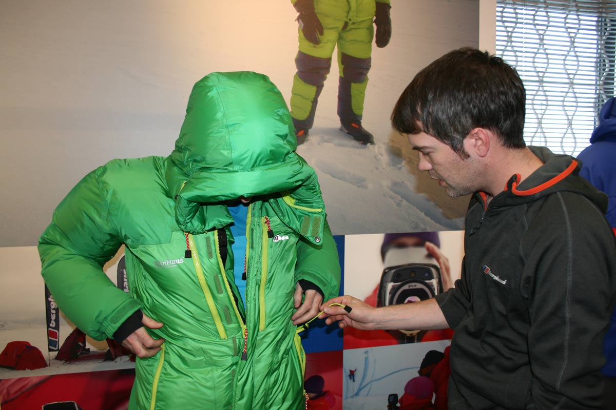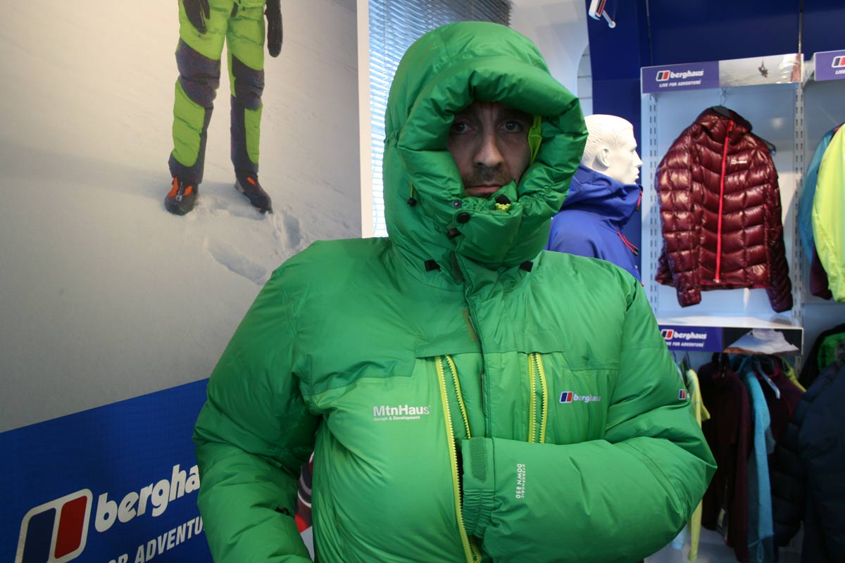 Which is why, after two solid days of testing with six subjects, the two-piece idea was shelved in favour of a zoned one-piece, erm, a down onesie if you like. The big advantage of the Greenland testing, says Berghaus, is that they came back with more advanced and detailed body-mapping data than ever before and, in the process, discovered that Leo Houlding – and we quote – ‘has kidneys like a girl’.