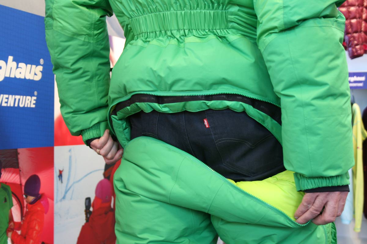 It’s not just about heat loss though. Climbers need to move on technical ground so they need both mobility, but also lack of bulk. One simple reason for this: if you’re climbing, you need to be able to see your feet clearly. One big disadvantage of the two-piece suit was that the double-bulk around the midriff made that really hard to accomplish.