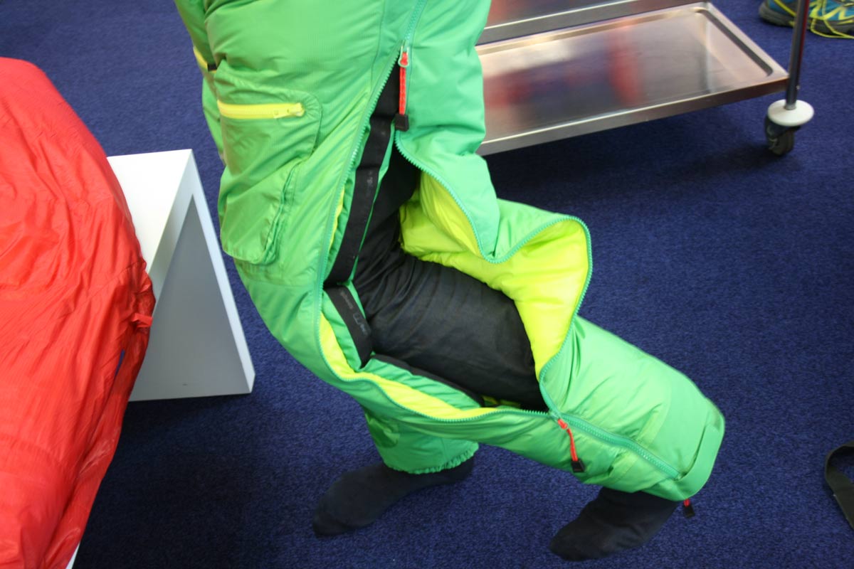 It too is body mapped with high warmth zones around the torso, head and toe areas and medium zones underneath the body and around the legs. Like the suit, it was developed with input from the cold chamber at Loughborough, leading to a redesigned neck baffle and other improvements to eliminate cold spots.