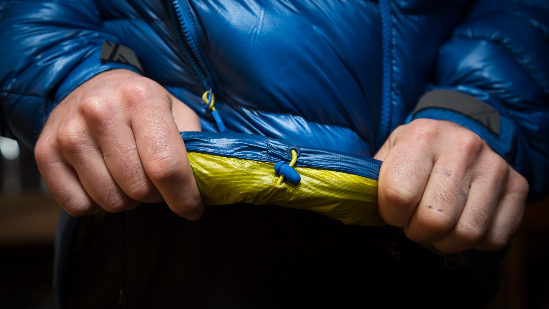 The hood, complete with adjustable head-cord, takes a helmet, but is luxuriously warm without. And you could in still, cold conditions layer it over, say, a close-fitting technical soft shell as a belay jacket.