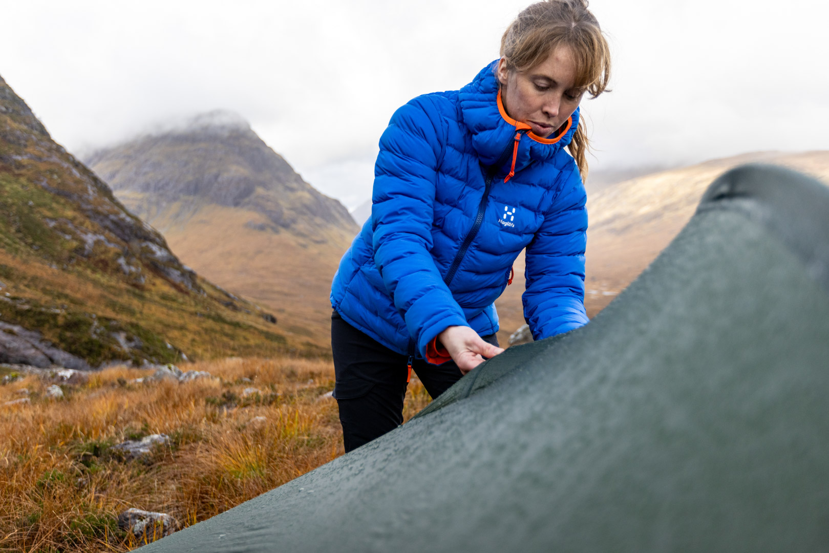 Nicole testing the Haglöfs Spitz Down in Scotland. Photos: Dave Macfarlane
