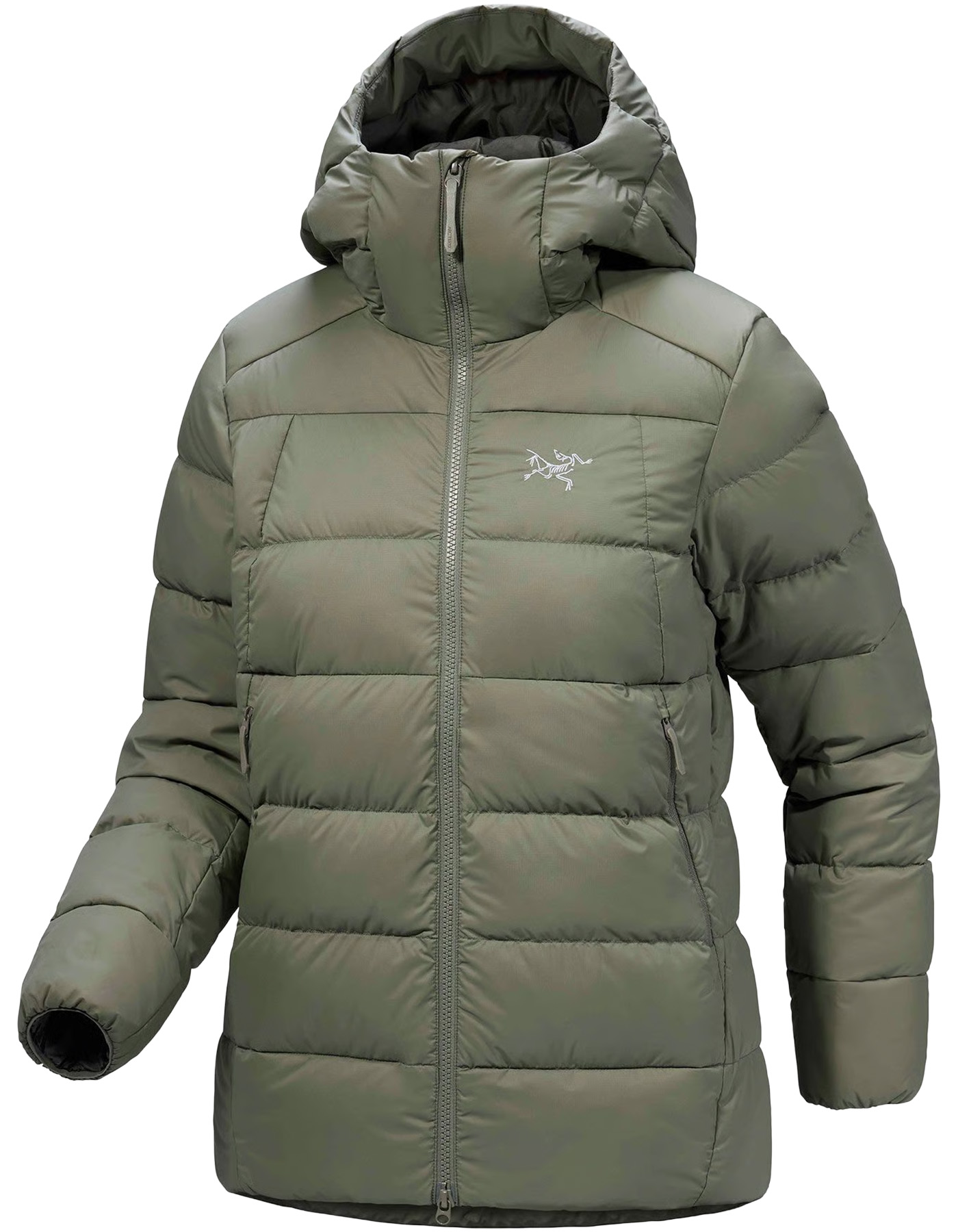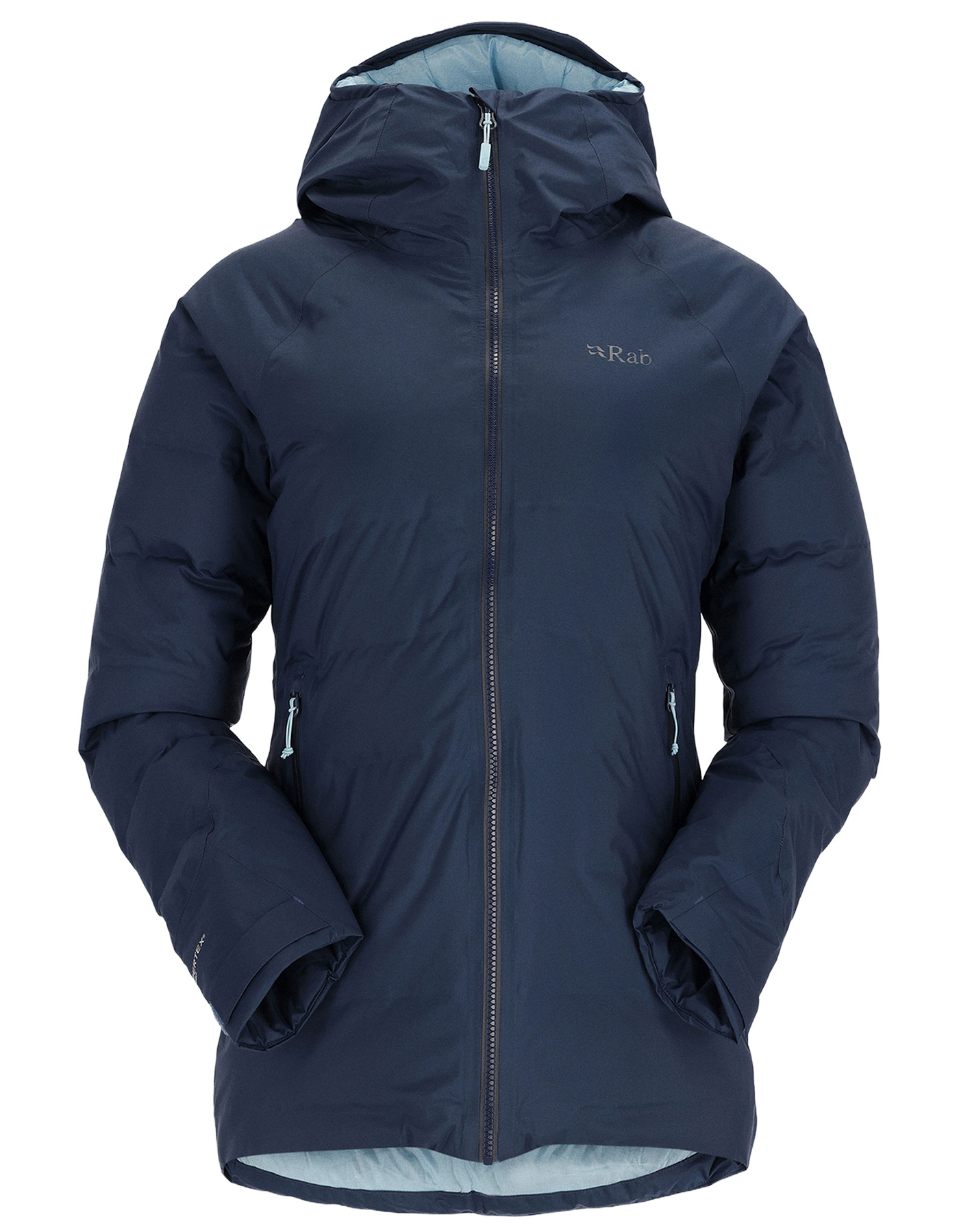 Arato 20 nylon face fabric / DWR finish / 750 fill power down / two zipped handwarmer pockets / adjustable hem / elasticated cuffs.