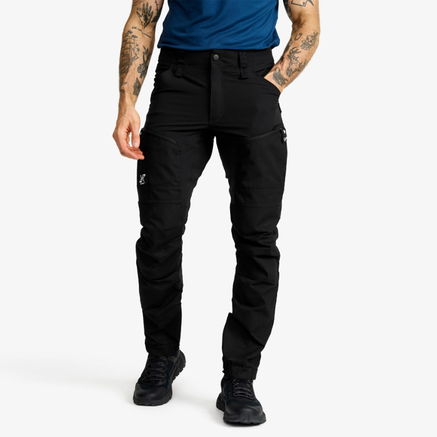 Quick-dry fabric with 4-way stretch / Removable webbing belt / two zipped handwarmer pockets with a hidden security pocket / zip fly / reinforced seat and ankle scuff patches / adjustable ankle cuffs / thigh zips for ventilation.