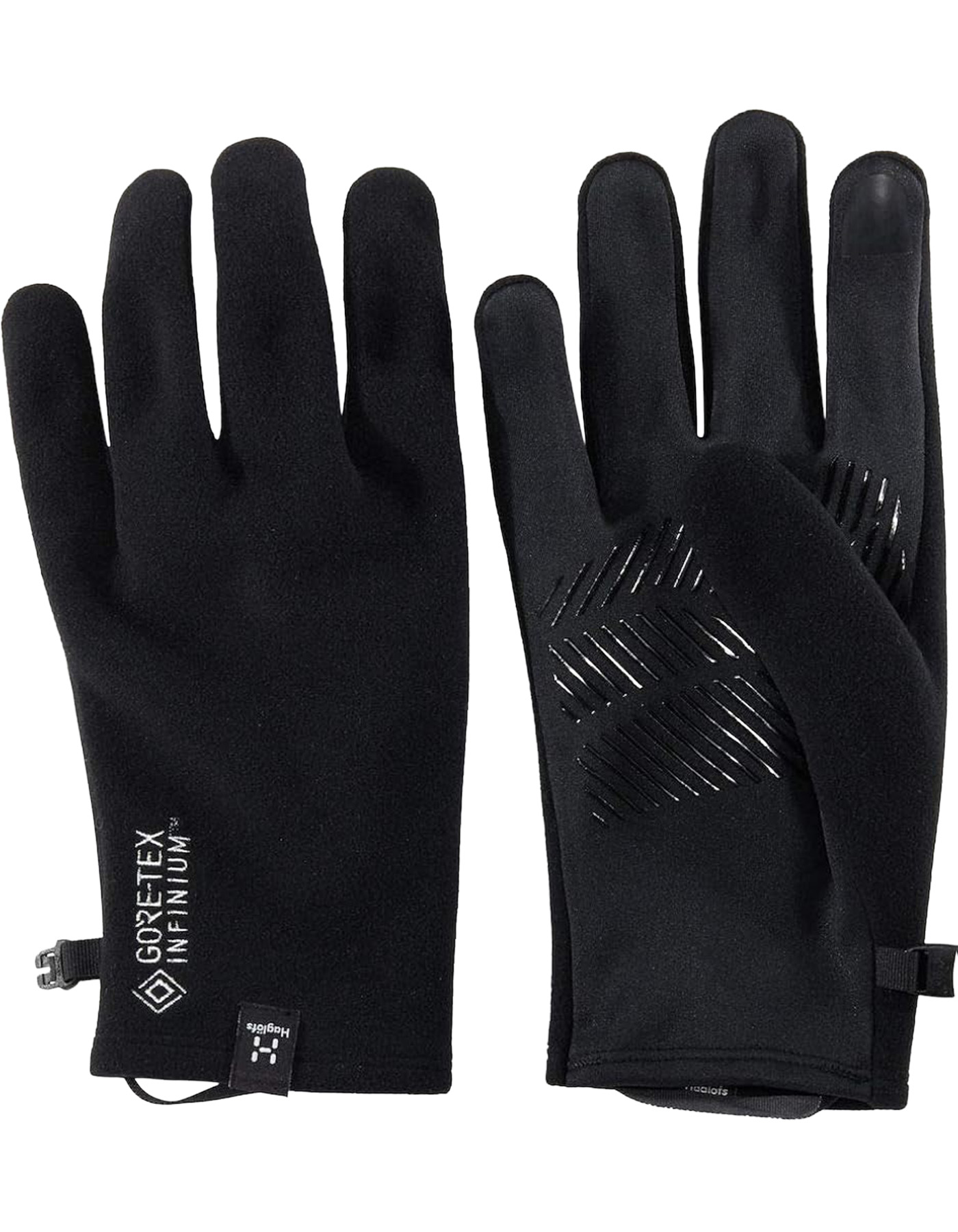 Sizes 6 – 11 / GORE-TEX Infinium 100% Polyester, two thin warming Micro-Fleece layers laminated to a Windstopper ePTFE membrane 319 g/m2 / anatomical fit / touch screen compatible / grip enhancing silicone print.