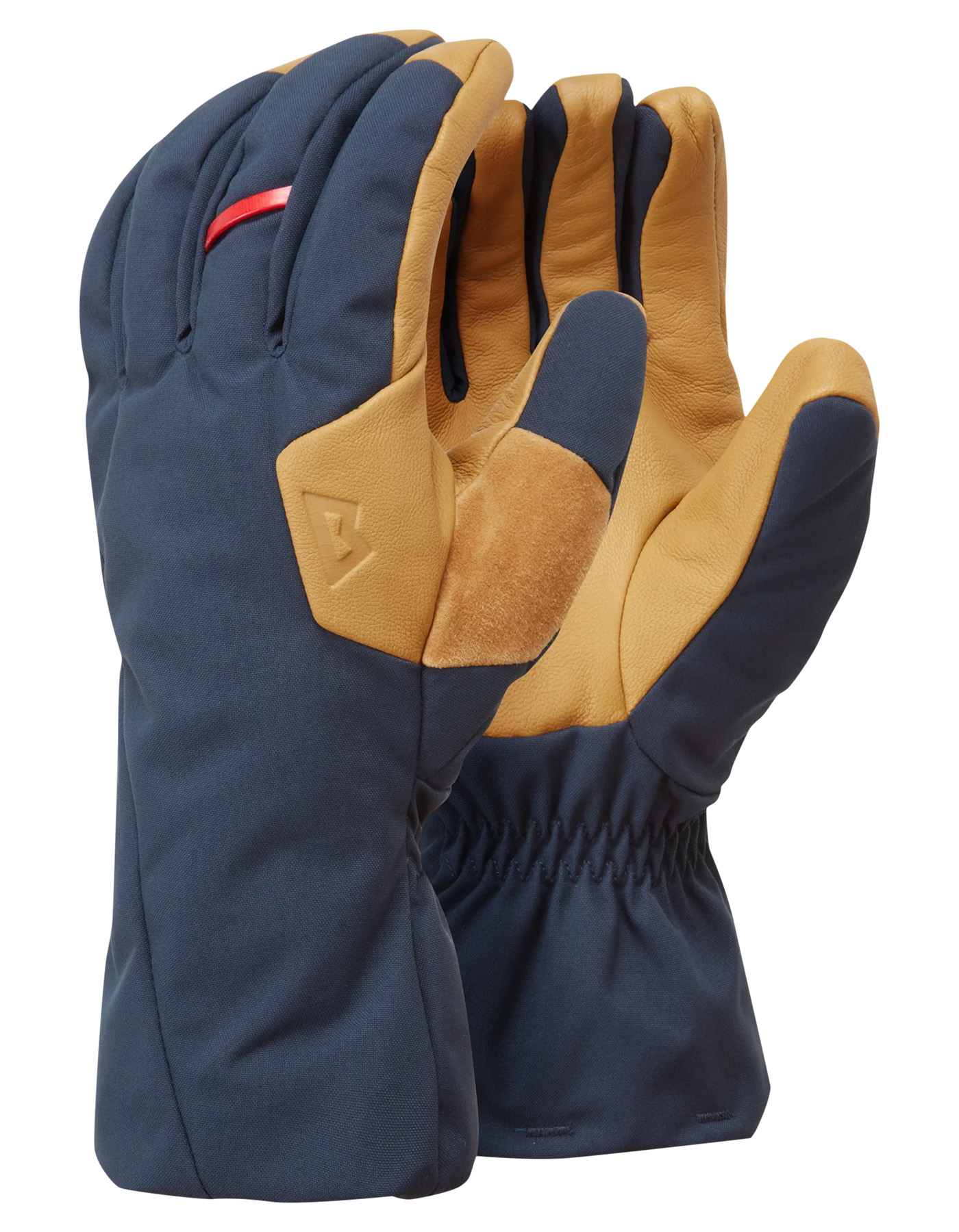 The large cuffs are elasticated at the wrist for a snug fit and have an elasticated draw cord at the bottom. We particularly appreciated the single-hand operation toggles. The cuffs also have a small hidden loop each to help you pull the gloves on with cold or damp hands. You could use them to attach the gloves together to a carabiner but there is also a finger carry loop, allowing the gloves to be hooked cuff-down onto a harness so snow doesn’t accumulating inside. It’s details like this, and the suede patch on the back of each thumb for nose wiping, that show the Mountain Equipment Guide Gloves have been developed with a true understanding of the end user.