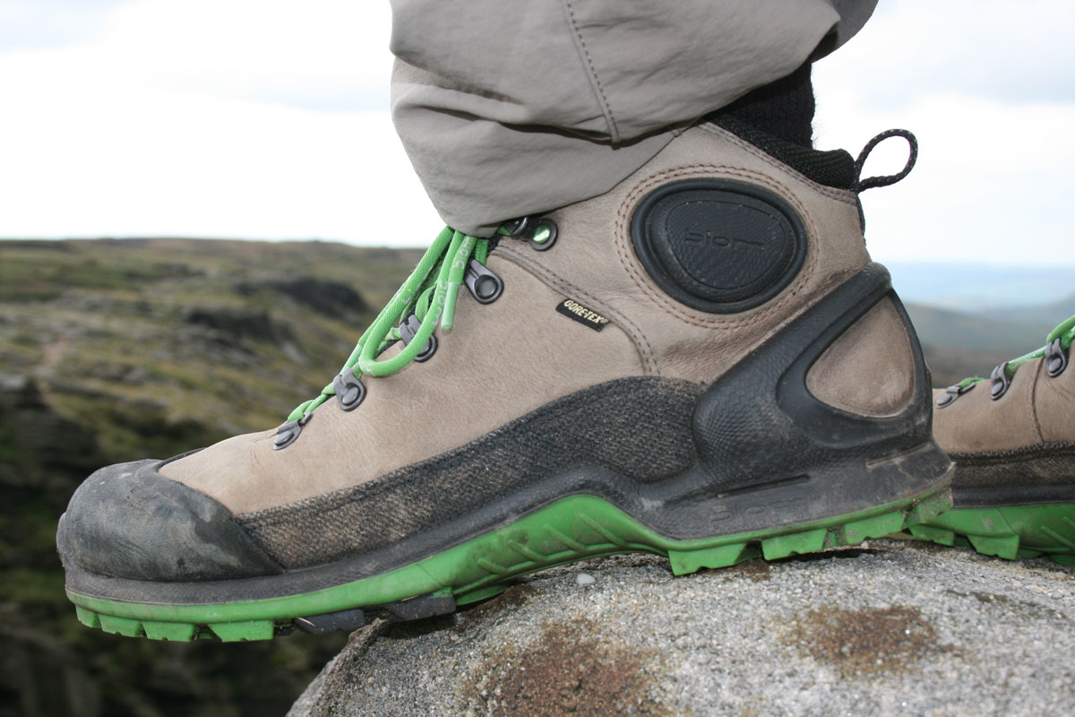 There’s more too. The construction is glueless. Instead the upper and sole unit are merged using direct injection techniques so they’re bonded and destined, hopefully to remain a single unit for ever. There are rubber toe bumpers, a kevlar-based rand, a Gore-Tex liner, Memory Foam and green laces, though black spares are also supplied.