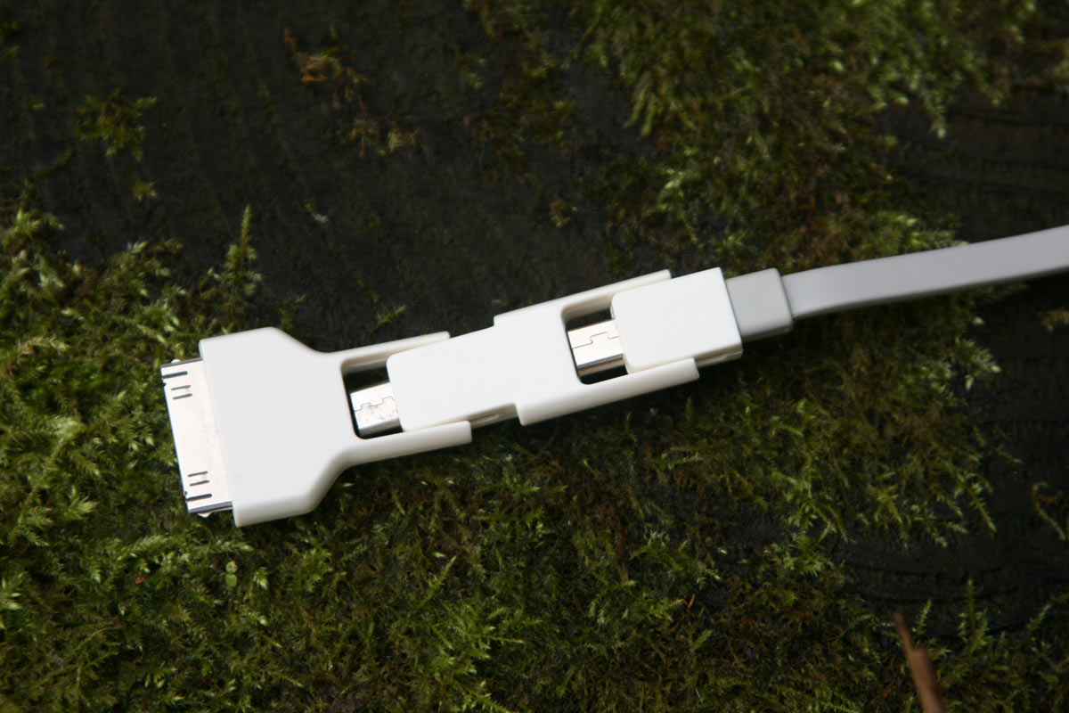 It’s a neat, solid feeling little unit with swanky brushed metal sides and roughly half the size of a smartphone. Weight is 106g including the multi-adaptable USB charging cable. A propos of which, it’s a really neat little bit of kit that includes an iPhone plug, micro-USB and mini-USB at the business end and a standard USB at the other.
