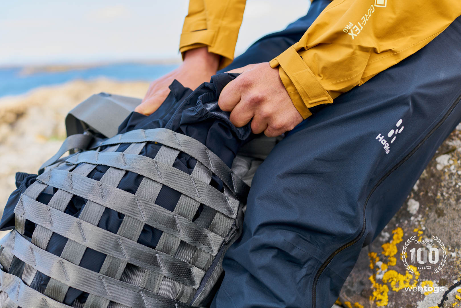 On the outside of the pack, there’s an adjustable exterior cargo net designed to accommodate a bike helmet, plus a zipped stash pocket and twin utility side pockets. These are perfect for a water bottle or a cycle D-lock. The zipped pocket is a useful place to keep your keys, wallet or travelcard.