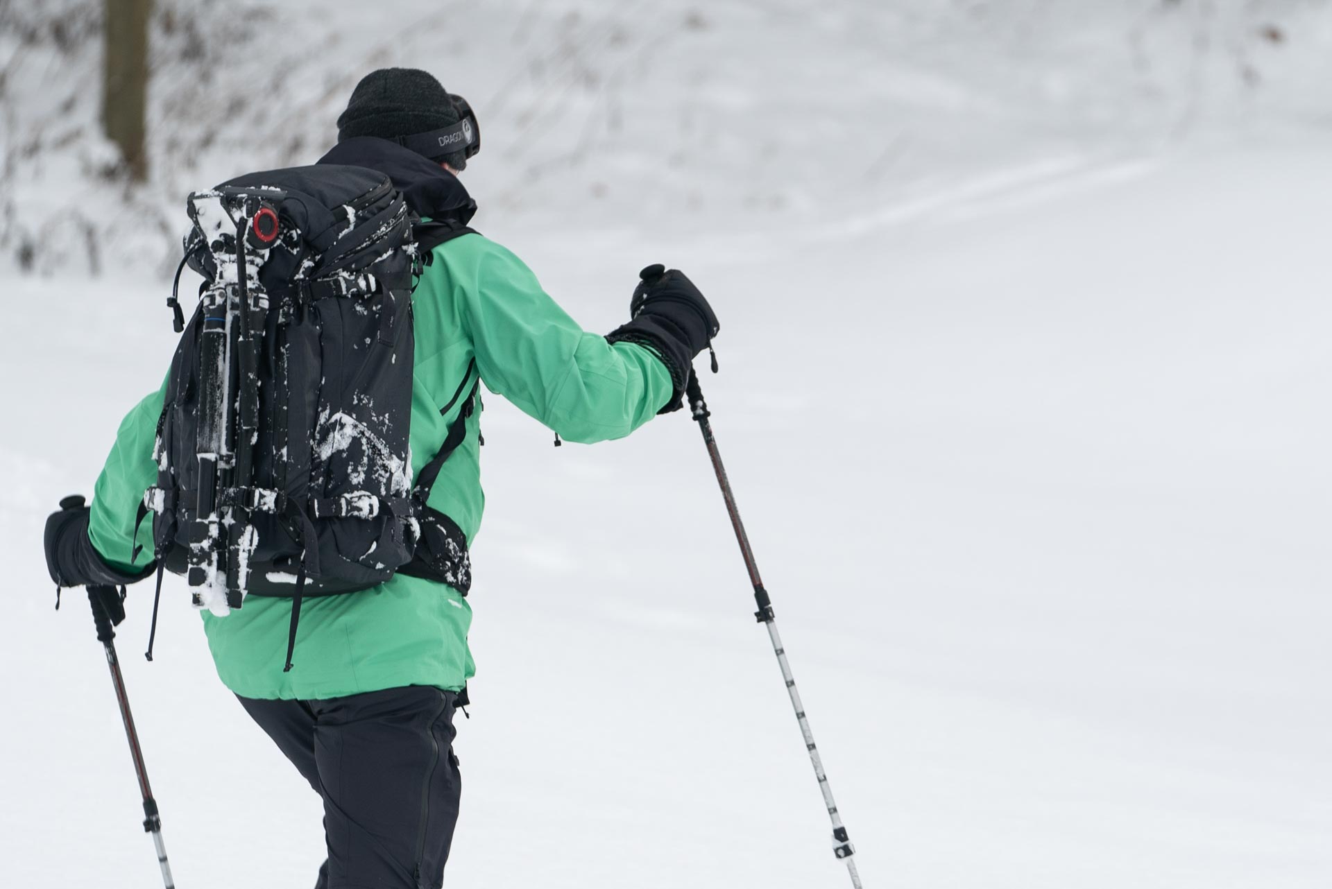 I was using the Anja bag in combination with a medium ICU (Internal Camera Unit). This gave me enough space to pack extra mid-layers, lunch, water and even a helmet inside the main compartment. Within this ICU, I was carrying a Sony A7R II, Sony 24-70 lens, Sony 90mm prime lens, Voigtlander 15mm prime lens and a wireless mic set, which just about maxed out the space.