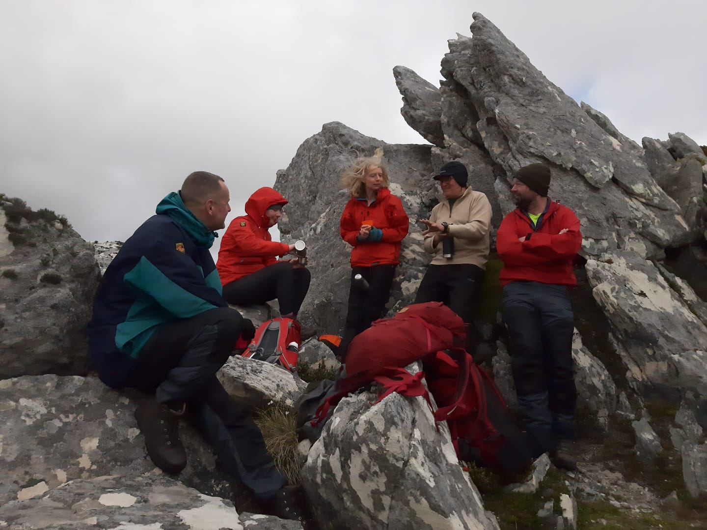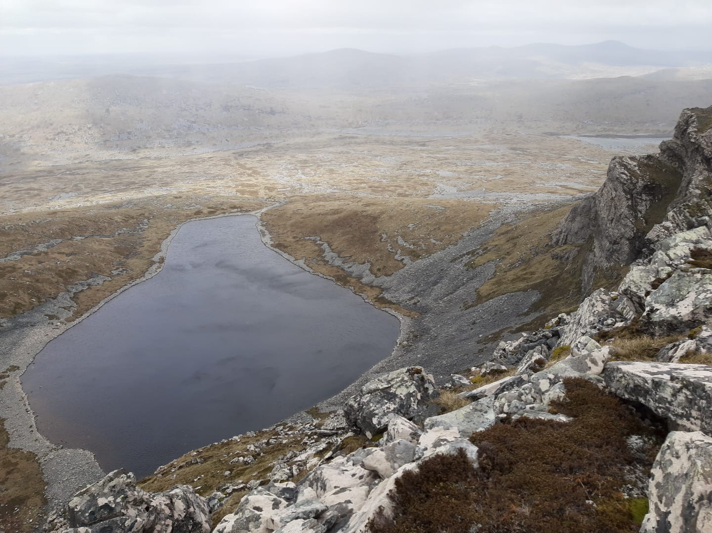 Usborne is not a technical climb and I didn’t find the terrain as gnarly as walking across country in the Pennines. The bogs didn’t seem as deep, the white grass is easier than bracken, the diddle dee is not as high or as thick as heather and the rocky stone runs are more stable and less steep than scree. The weather was a bit taxing even though it was summer; the wind was relentless and I was glad to have my Fjällräven jacket on the descent when I was engulfed in a mini blizzard for 15 minutes and plastered in snow.