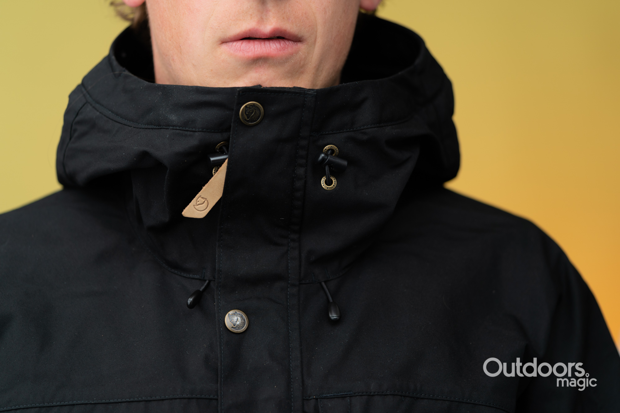 Starting at the top, and working our way down, the Fjällräven Kaipak Jacket has an adjustable hood with protective brim (the hood is adjusted with a drawcord). Perfect for when the weather has gone up a notch, and you want to cocoon yourself into the coat. It’s also helmet compatible – one of a couple of features that might make this endearing to climbers.