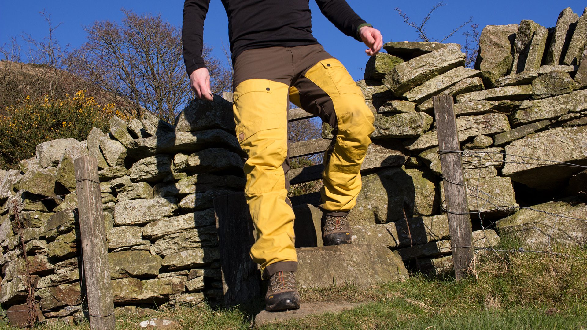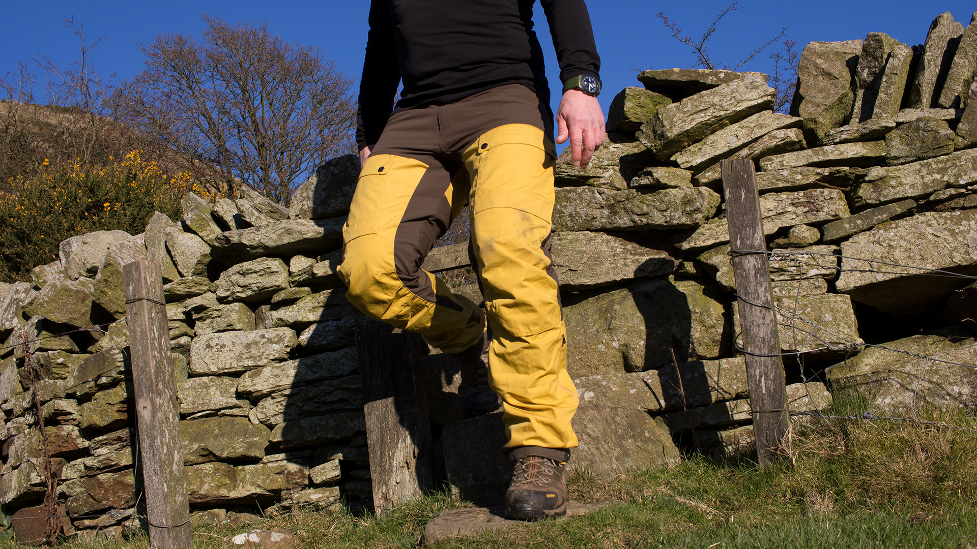 Anyway, the Keb Trousers are the brand’s technical mountain trekking pants. They’re made from a mix of the tough, canvas-like G1000 Eco – the yellow bits – and stretchy, but still tough 4-way Stretch fabric. Think of it as old-fashioned, new-fangled soft shell with decent wind and water-resistance and you won’t go far wrong.