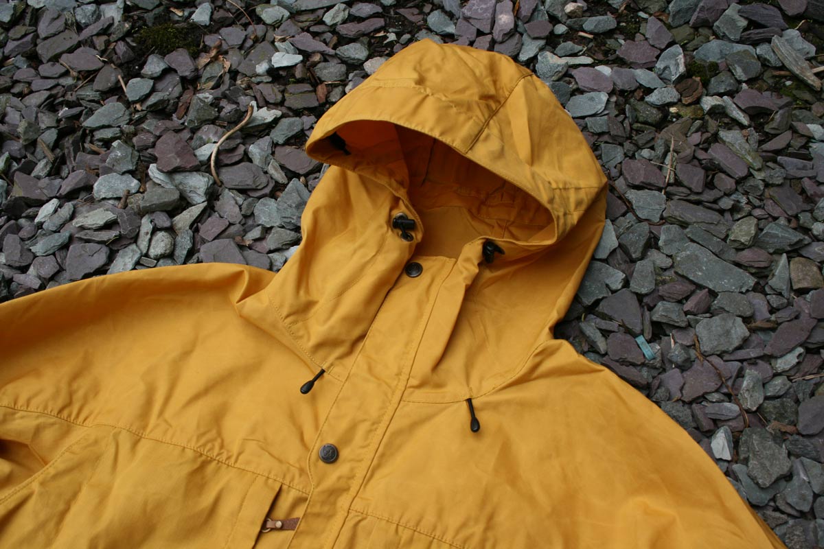 Oddly attractive yellow jacket made from Fjällräven's waxable G1000 fabrics arrives.