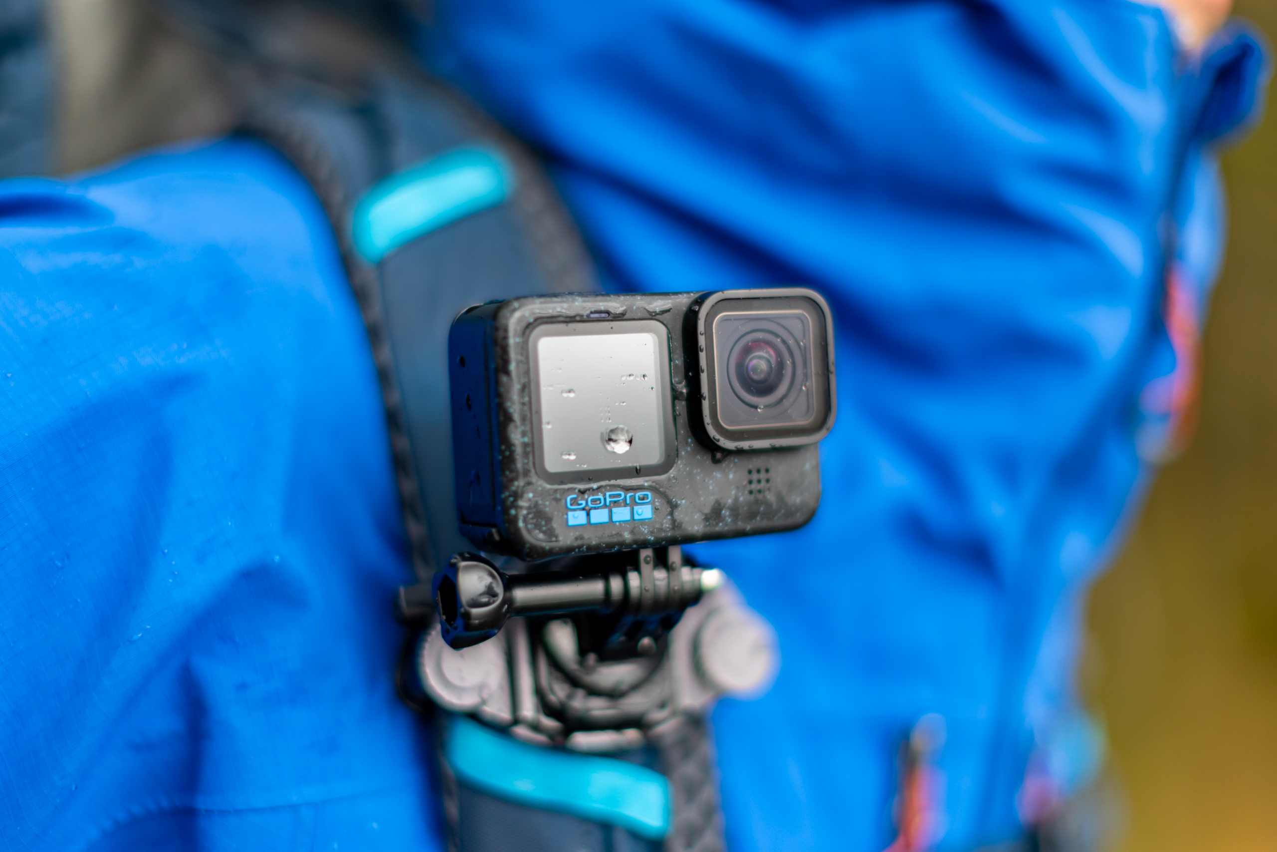 We tested this GoPro out with a Max Lens Mod 2.0 – an additional purchase. This lens clips easily and securely onto the GoPro to create an ultra wide-angle covering a field of view of up to 177°. You know when you see 360° cam footage of people scrambling along knife edge ridges or riding through thick powder? This creates a similar image; essentially, if you’re filming yourself or someone near you, it brings more of you and your surroundings into the picture. It’s not really a detail for shooting landscapes or general views, but we found it excellent for filming people running, cycling, snowboarding etc.