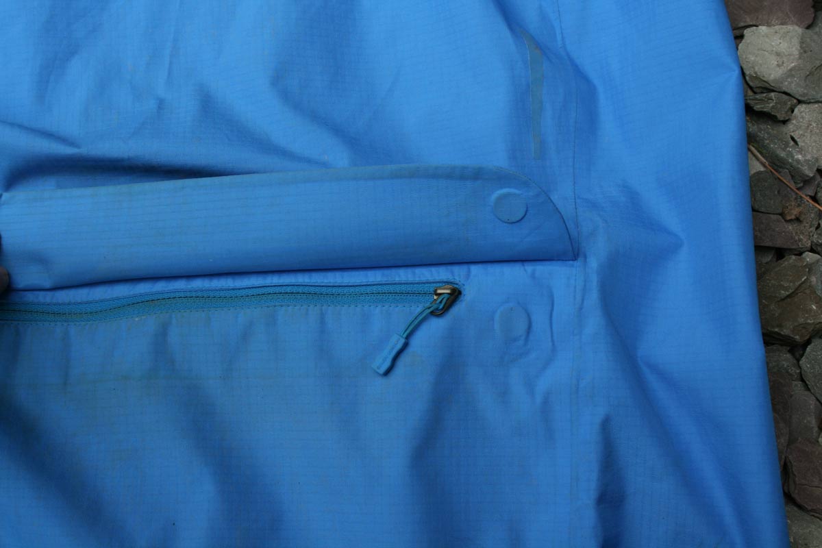 The minimal single stretch chest pocket is enough for us and the jacket packs down compactly enough to stow in a small-capacity daysac when not needed. And when it is called for it’s kept us consistenly dry both from the rain and by dint of good breathability. It looks good too in a sort of feral green colour and we’ve used it for walking, scrambling running and biking.