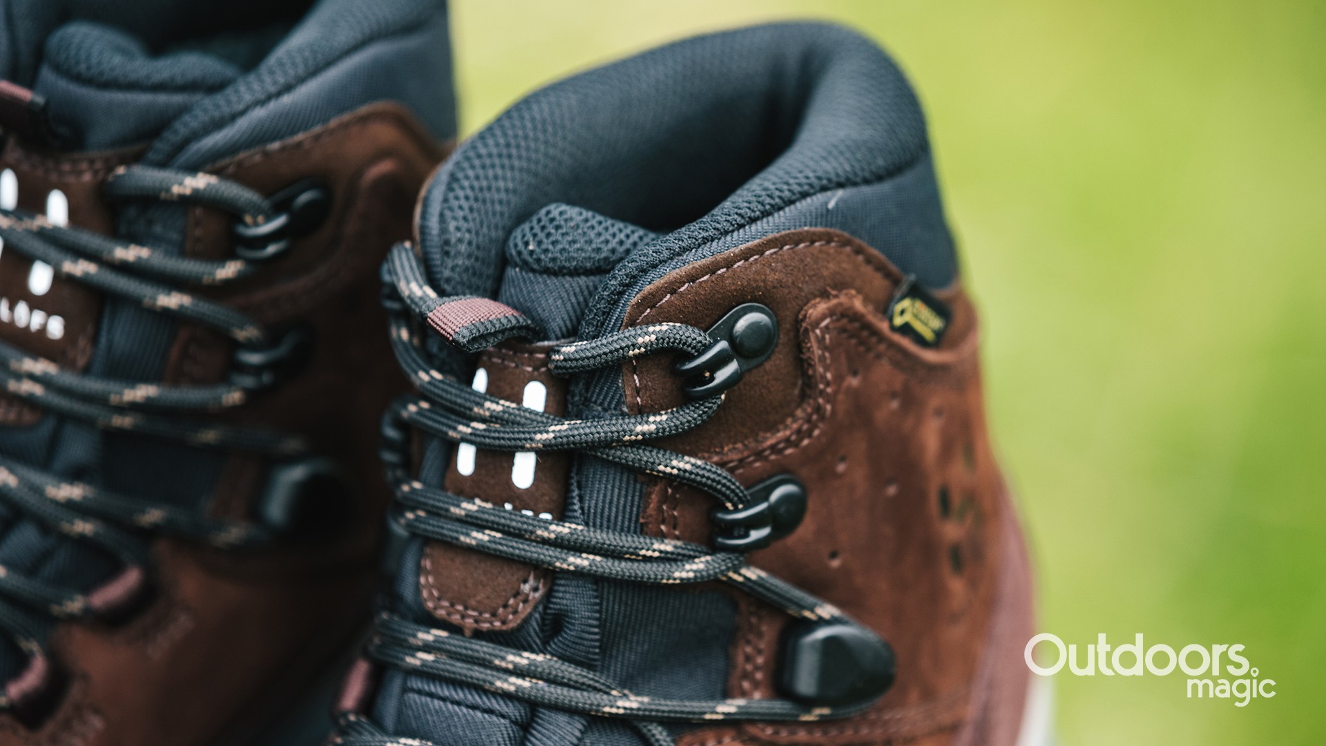 First things first, let’s talk about the protection you get from this. It uses a Gore-Tex system that’ll keep any water out, and the nubuck and suede leather panels have a fluorocarbon-free coating (good for the environment) to help prevent the outer materials from wetting out quickly and thus maintain breathability.