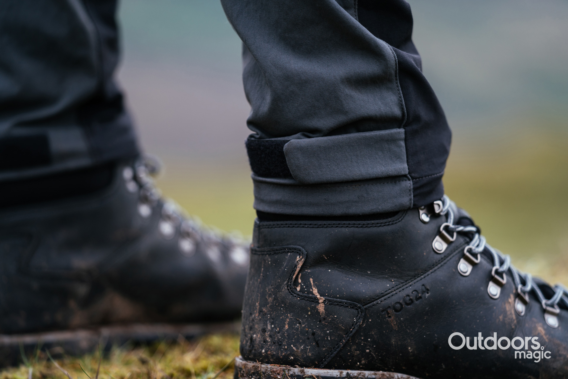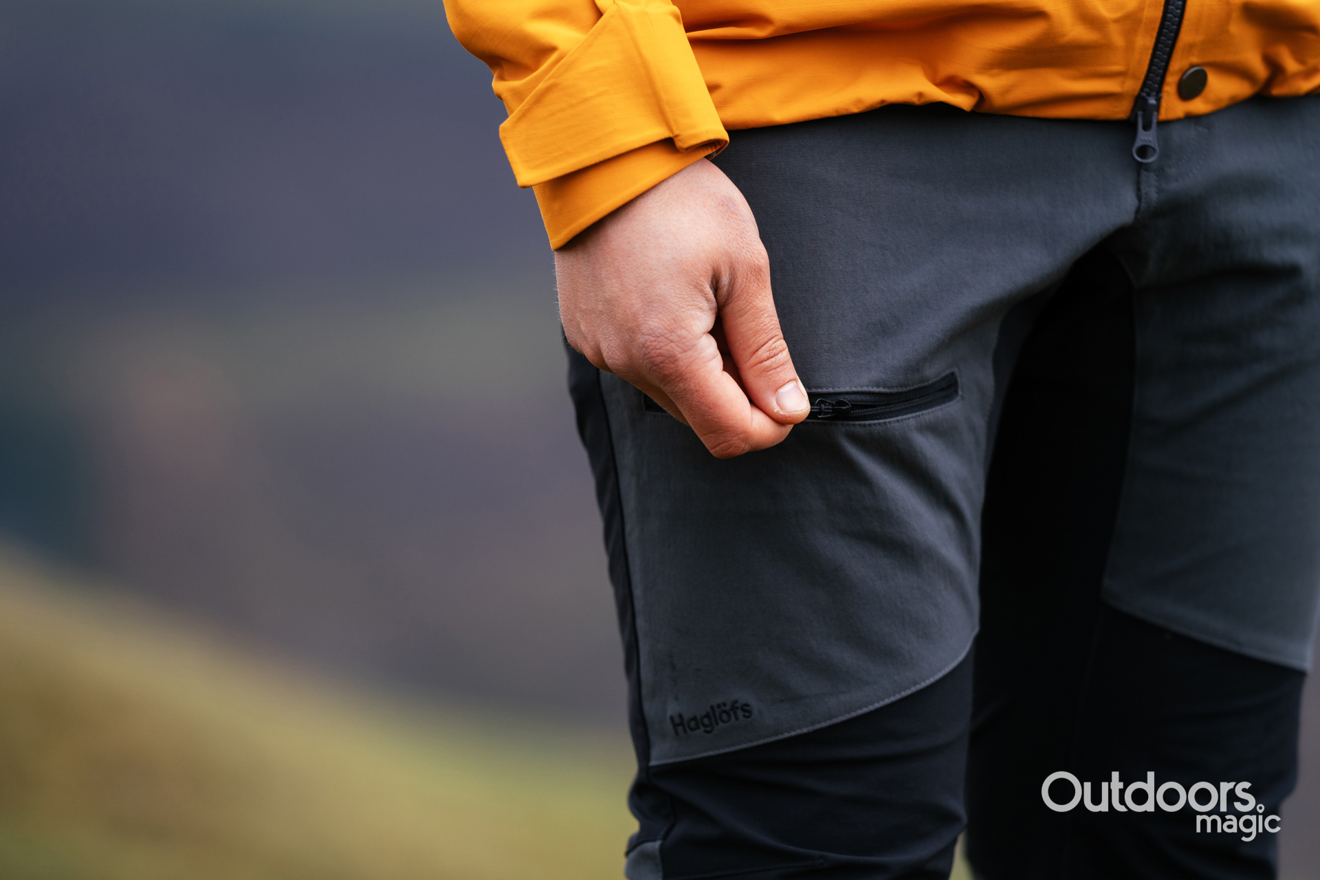 The Rugged Flex features two types of fabric that are both treated with an eco-friendly durable water repellent. Across the front of the thighs and on the calves there’s a tough Climatic polyamide which feels a little like tightly-woven cotton. This will take any tough stuff right on the chin. Then, on the knees, shins, backside and inner thigh there’s a four-way stretch fabric made from a blend of polyamide (90%) and elastane (10%). On their website, Haglöfs call this stretchy fabric ‘reinforcement’ but we’re not sure it is. It doesn’t seem to overlay the Climatic fabric, but is used alone. Still, it’s a lovely fabric that’s capable of withstanding abrasion, say when you’re scrambling up coarse rock.