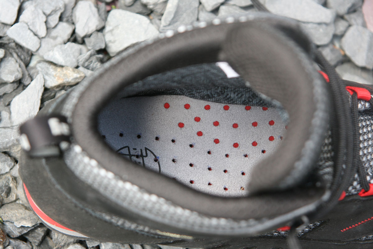 There are more clues inside: the removable footbed is perforated throughout its length to allow airflow to the sole of the feet again. Gore tells us that the extra breathable area equates to around one third of the foots’ complete surface and that ’30-35% of the sweat glands on our feet are located on the soles’.