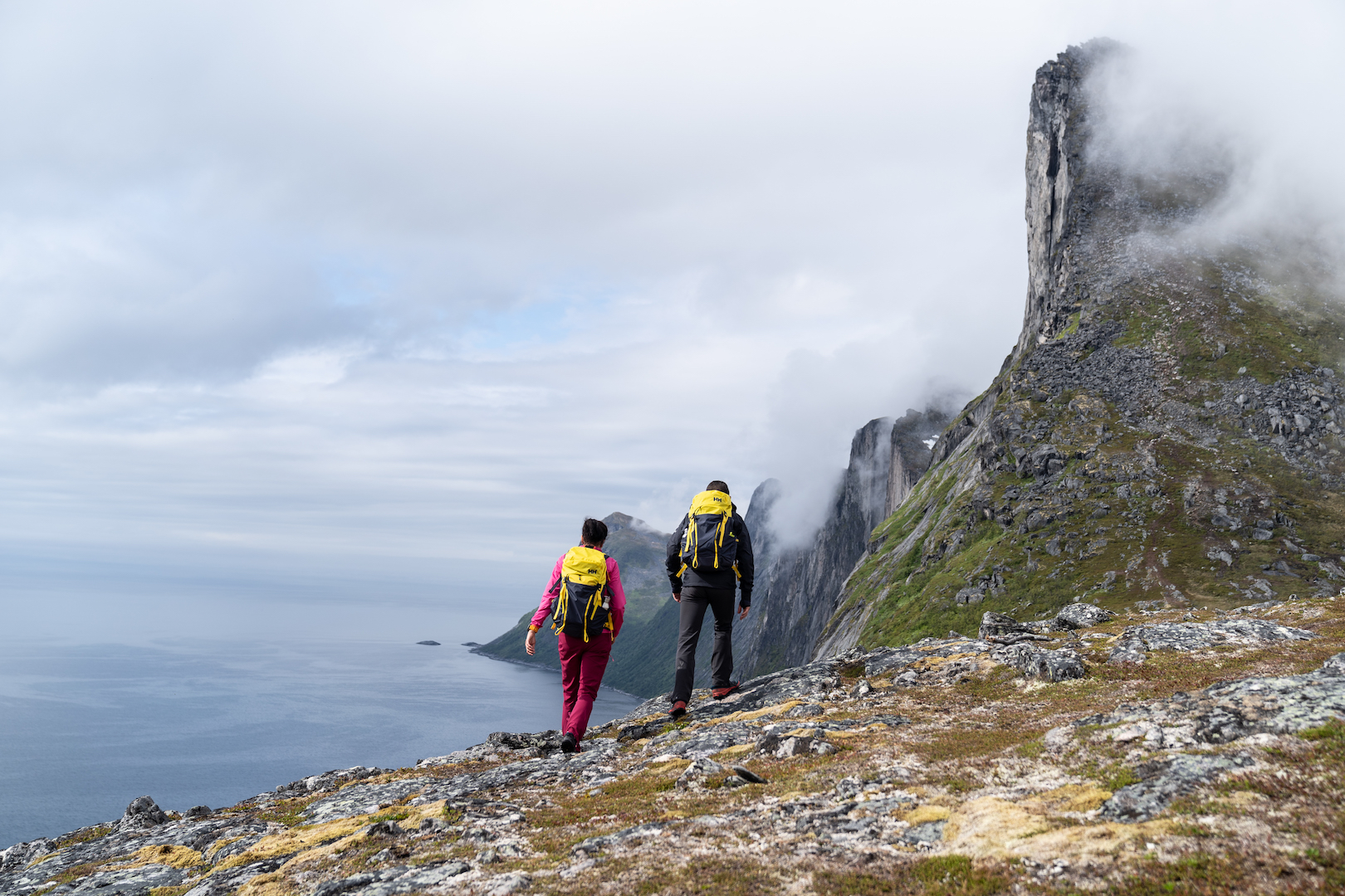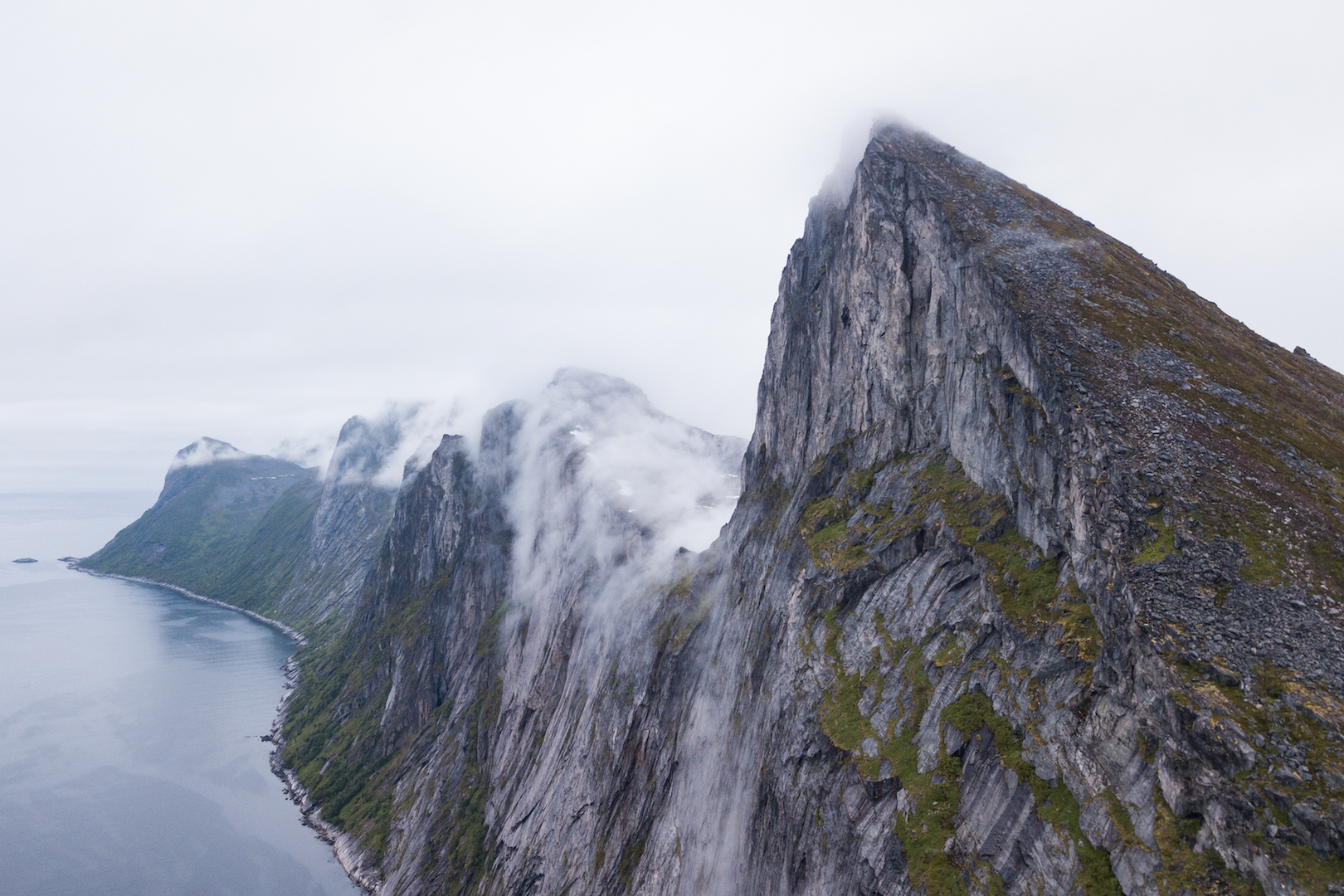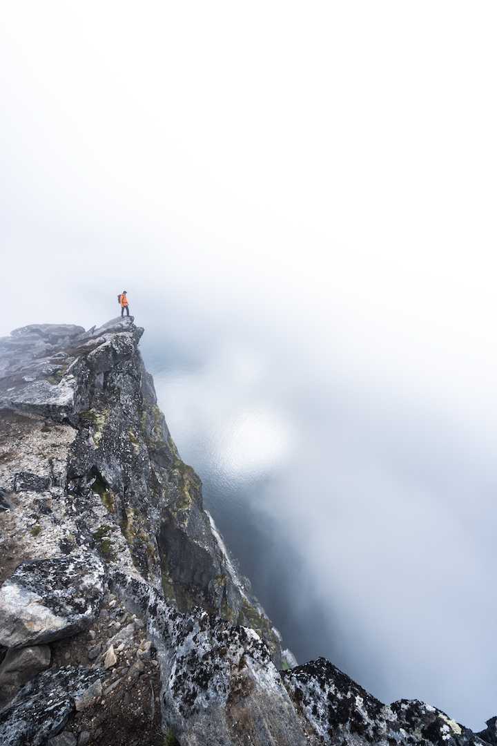 My goal is Segla, a 689m mountain that makes Tryfan, that popular peak in North Wales, look tame and boring. Like a shark’s fin of naked rock emerging, sheer and imposing, out of the fjord, Segla is a regal, formidable yet beautiful wall of rock. From some angles, it looks utterly un-climbable; from others, remarkably, it’s a relatively straightforward trek over rough terrain to the summit, which serves up expansive views across a backdrop of soaring peaks, sweeping ridges and the blue waters of Mefjorden. It is an ethereal, other-worldly landscape: a hiker’s paradise.