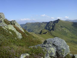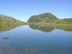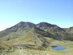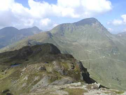 We were blest with sunny weather, and so had excellent views of the Grossglockner range to the south. From the top station we followed the path south, over to the west there was good views across to Geisstein, the highest mountain in the Glemm valley. After a while the path comes to a small lake at Seetorl. From here the path contours around the slopes of Hochkogel, and path rejoins the ridge at Klingertorl (2059m).