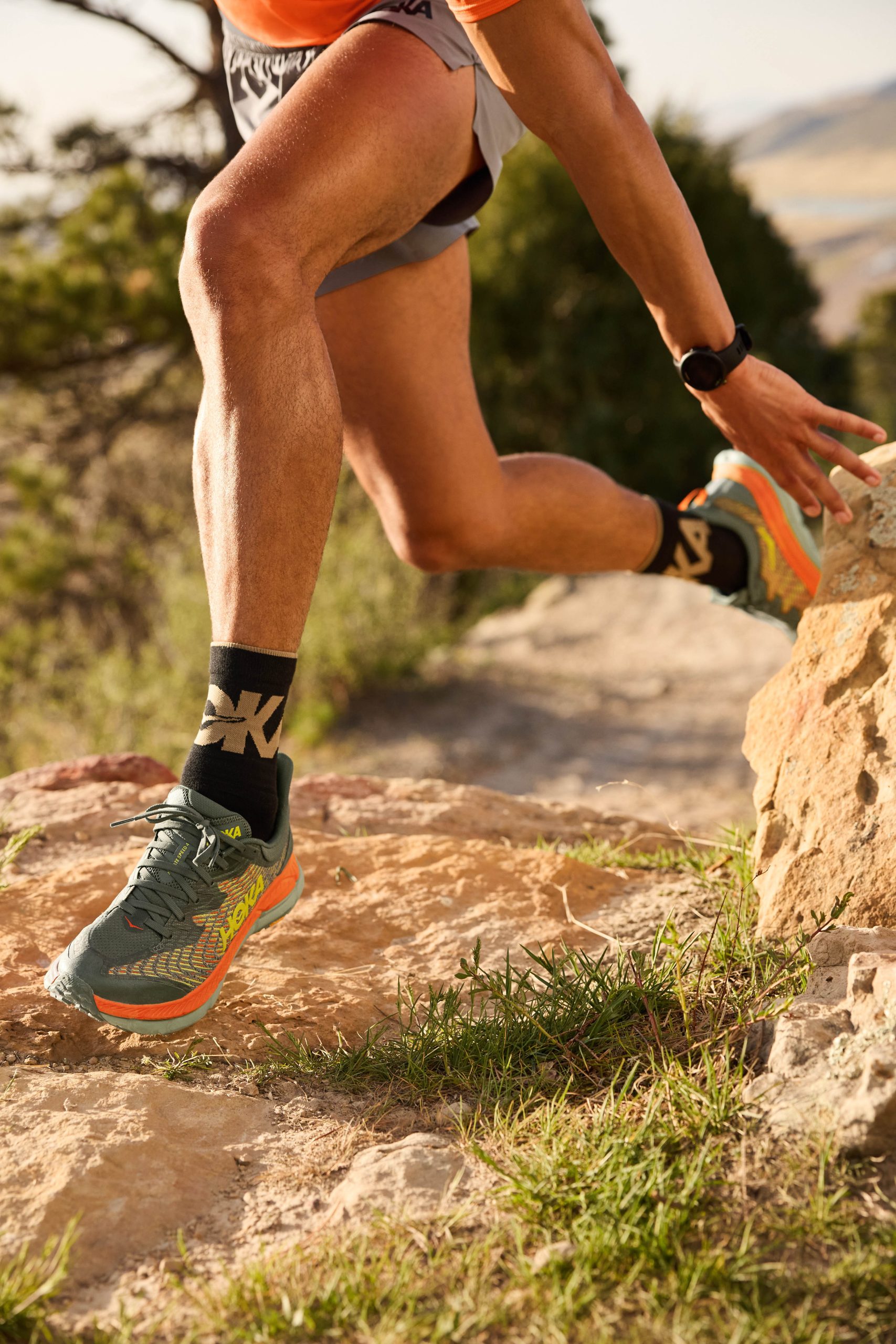 Features of the Mafate Speed 4 are plentiful. A protective rubber toe cap shields your feet from rocks and trail debris, while the aggressive Vibram Megagrip outsole is designed for enhanced traction on rugged ground. An early stage meta-rocker delivers a smooth transition through toe-off, the PROFLY+ midsole is resilient and tuned for an “energised ride”, as Hoka put it, and the single-layer woven jacquard mesh has been optimised for maximum breathability and comfort. With all these features combined, the Mafate Speed 4 is “built for the long haul”, whether you’re pounding out the miles on your local trails or taking on an ultra-marathon.