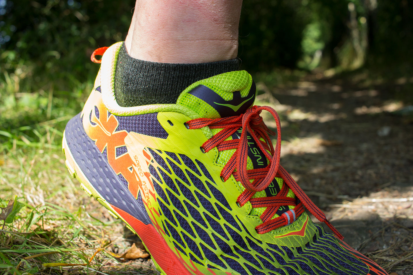 The Speed Instinct has much of the cushioning and rolling stride of Hoka One One’s signature shoes, but the firmer, more responsive forefoot gives much better trail feel and confidence, particularly descending on rougher ground.