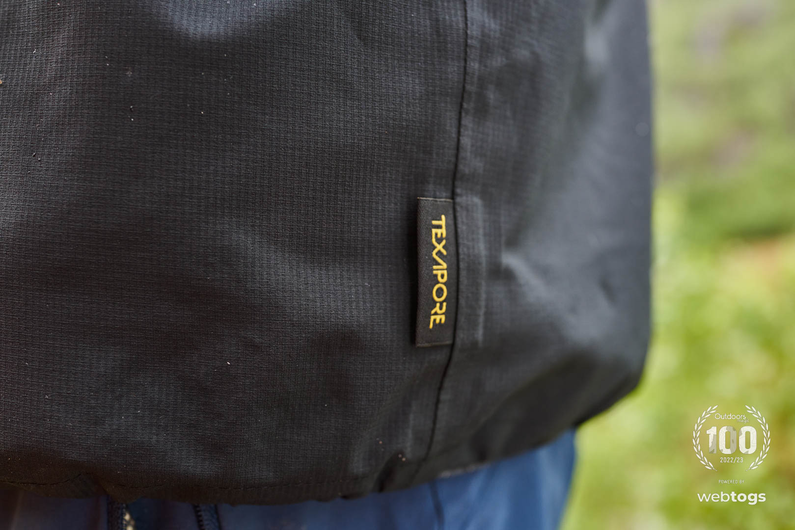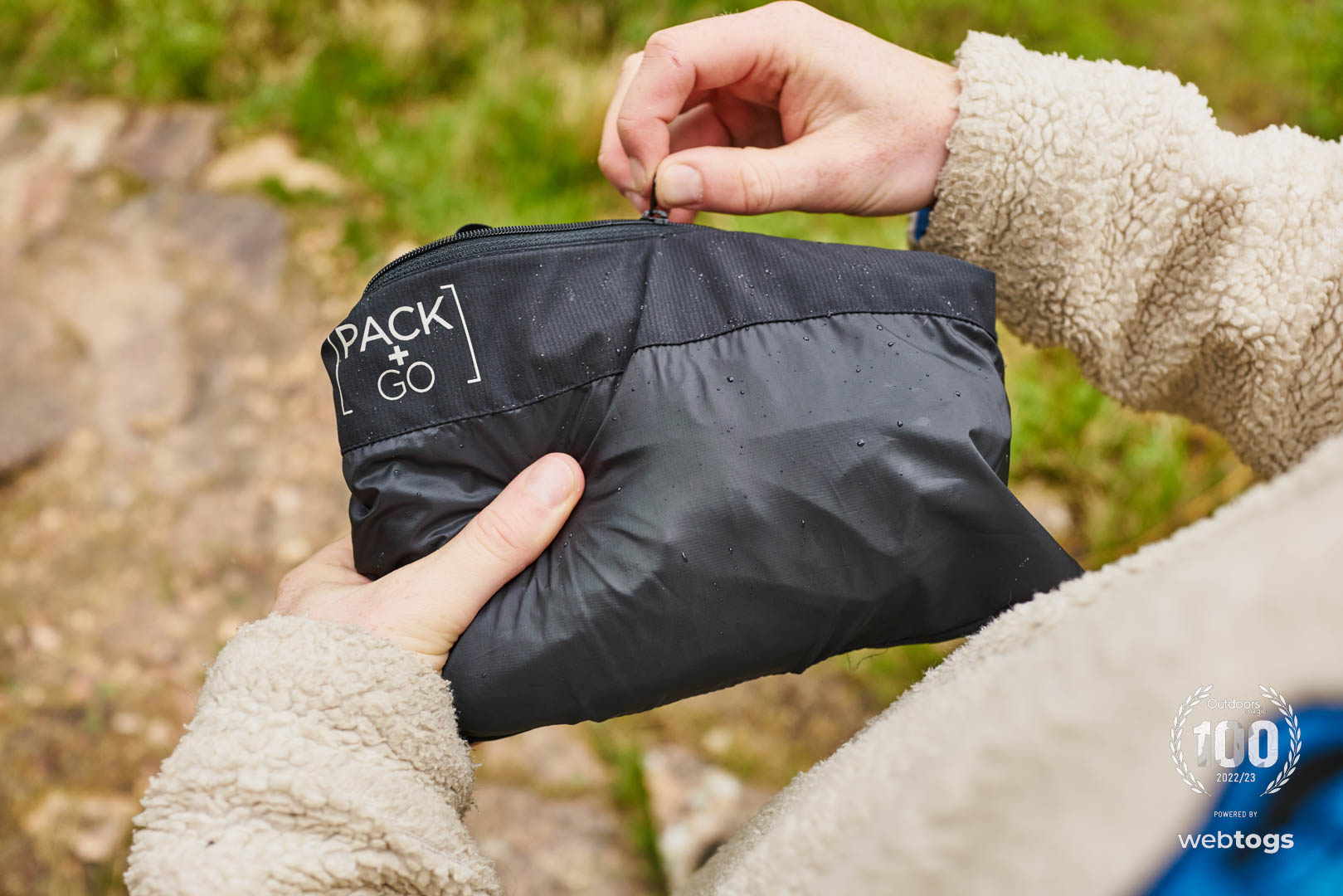 The primary material used for the Pack And Go outer fabric is Wolfskin’s own TEXAPORE 2.5-layer fabric, featuring a water column rating of 10,000mm and a moisture vapour transmission rating (MVTR) of 6000 g/m²/24h. Those figures aren’t high-spec, but you’ll still be able to count on this repelling water on the outside and expelling vapours from the inside.