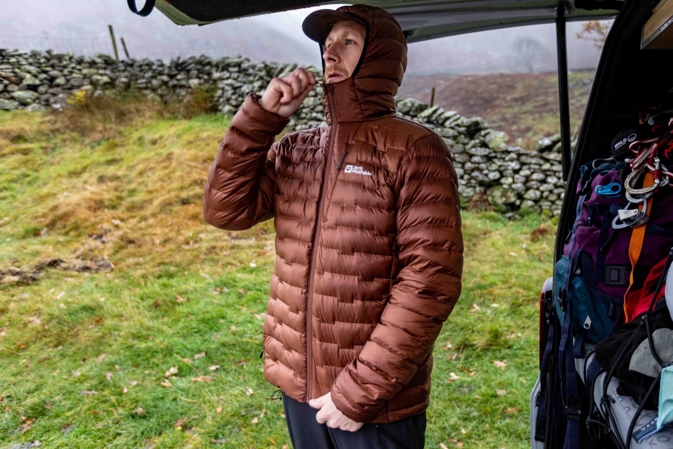 The outer fabric, Pertex Quantum Air, feels pretty tough. It’s soft to the touch without feeling flimsy or crinkly, and it’s stood up well to everyday abuse. Mud from carrying my muddy border terrier over stiles has dried quickly and brushed off without leaving marks, and I haven’t experienced any snags or tears so far. It’s not indestructible – no lightweight down jacket is – but it feels robust enough for regular hill use.