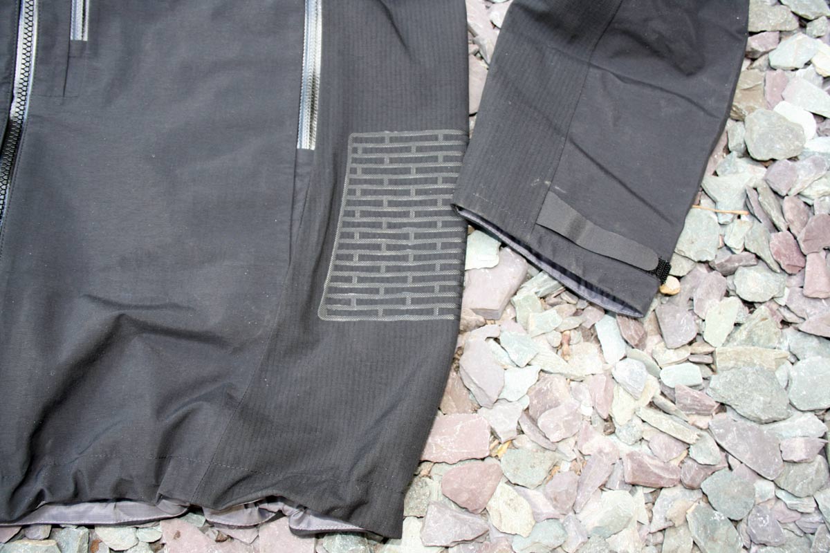 Alll of which looks good on paper as does the highly breathable three-ply eVent fabric. Unfortunately it’s not quite so clever in the flesh. The cut is long and generous with good crotch coverage for us at least, but the front of the jacket feels really stuff. Dig deeper and you find that the way the four pockets are constructed means that there are actually three layers of full thickness fabric over most of the front section of the jacket.