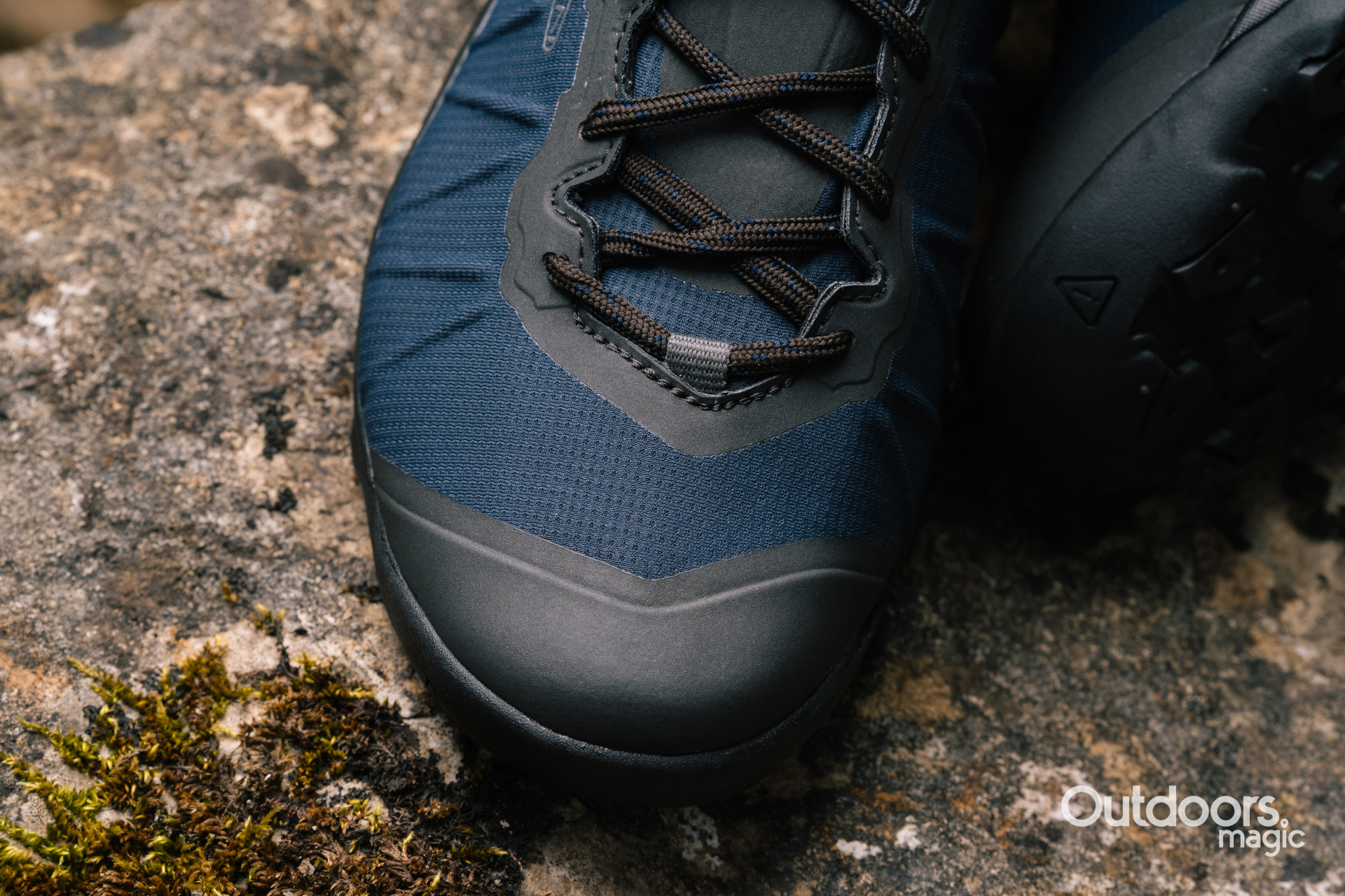 The Venture Mid is what happens when a lightweight upper meets a high-traction outsole. It’s a boot that delivers genuine bite underfoot without ever making you feel like you’ve got concrete blocks wrapped around your feet. The 4mm multi-directional lugs are well engineered, clamping your step in place both uphill and downhill. It’s not the most aggressive of treads out there, but it’s certainly enough for any trail hiking – whether that’s on wet or dry ground.