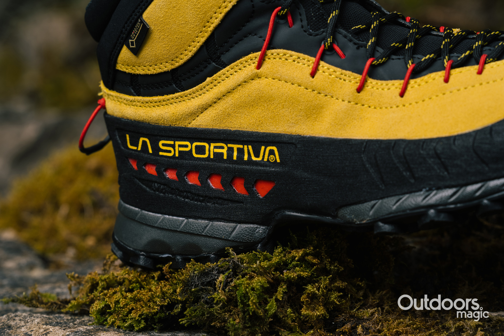 Why We Chose The La Sportiva TX4 Mid GTX: Lightweight, sticky rubber suited for climbing and scrambling, locked in feel.