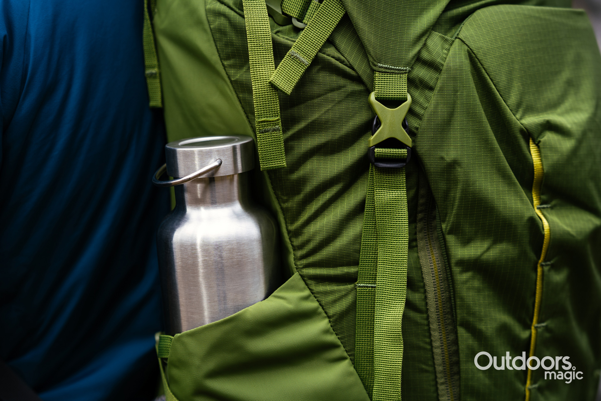 There’s an incredible amount of volume adaptability here, with two straps on each side, a floating lid and big stretch pockets. The main external pocket on the front is perfect for stashing a down jacket and a coat, while the side ones are ideal for a big water bottle – they won’t quite take a rollmat though. Other pockets include two zipped stretch mesh ones on the hipbelt (just the right size for a pack of Jelly Babies) and external and internal pockets in the lid, the latter of which has a clip for your keys.
