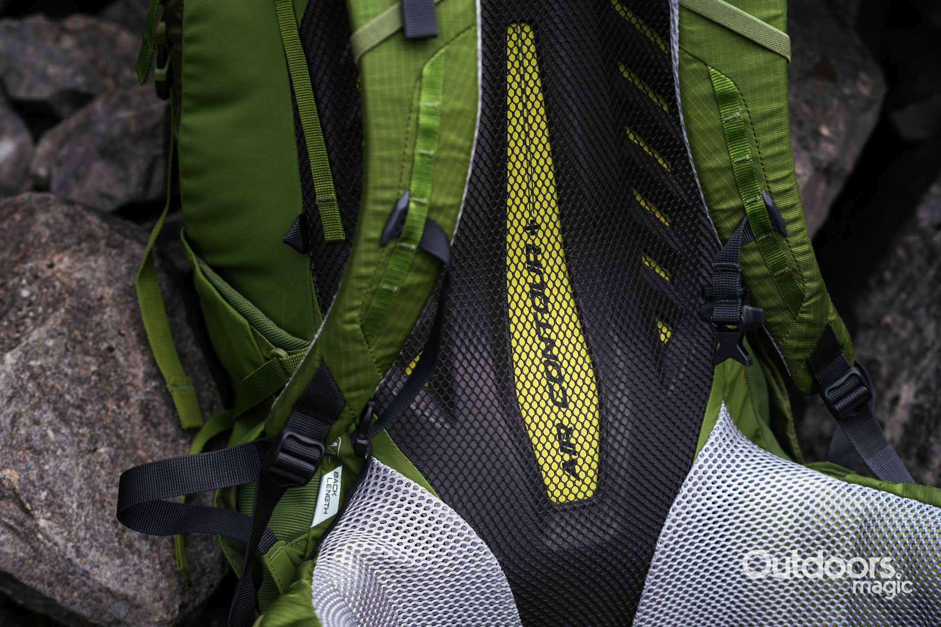 Access into the main compartment of the Lowe Alpine Altus is through a drawcord under the lid and also via a U-shaped zip across the front. With all the adjustment straps done up, this front zip is a little fiddly to get into while on the go, but it’s still a useful feature for when you’ve made it to your alpine hut, you’ve got the pack on your bed and you want to dig out that pair of flip flops to wear to dinner.
