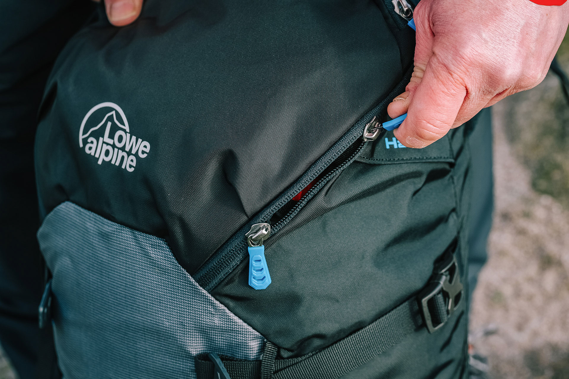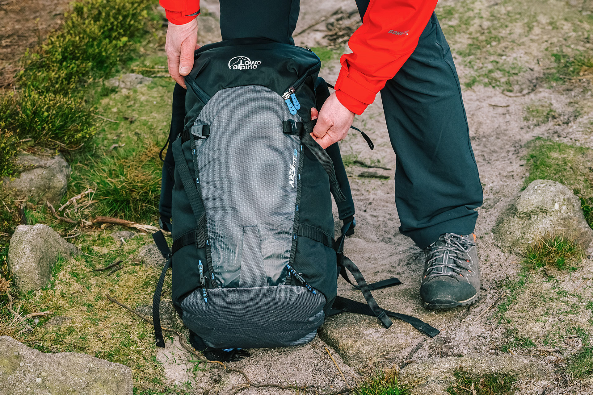 One look at the exterior of the Alpine Ascent illustrates clearly the kind of less-is-more thinking that’s gone into its design. It’s got a trimmed down, clean, look that highlights a conscious decision made by Lowe Alpine to turn away from the faff and fuss evident in the designs of other bags in the industry. Don’t believe us? Just take a look at that super nice, super streamlined, zip entry system.