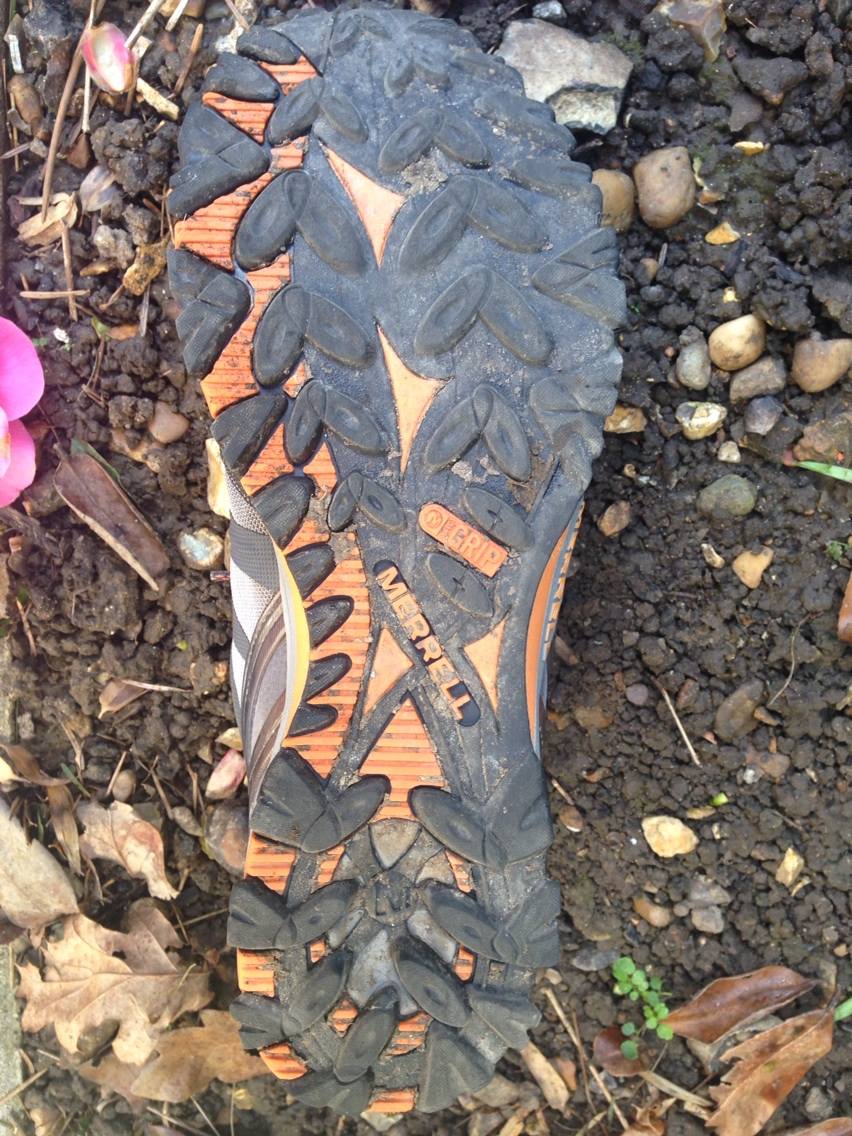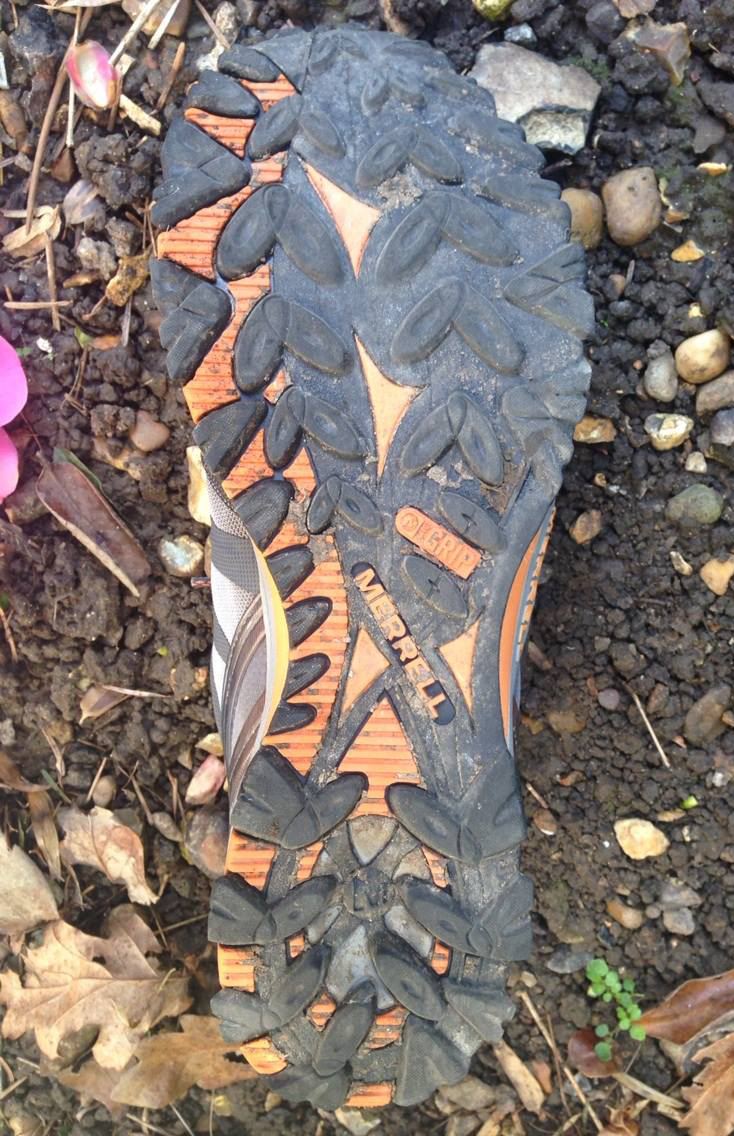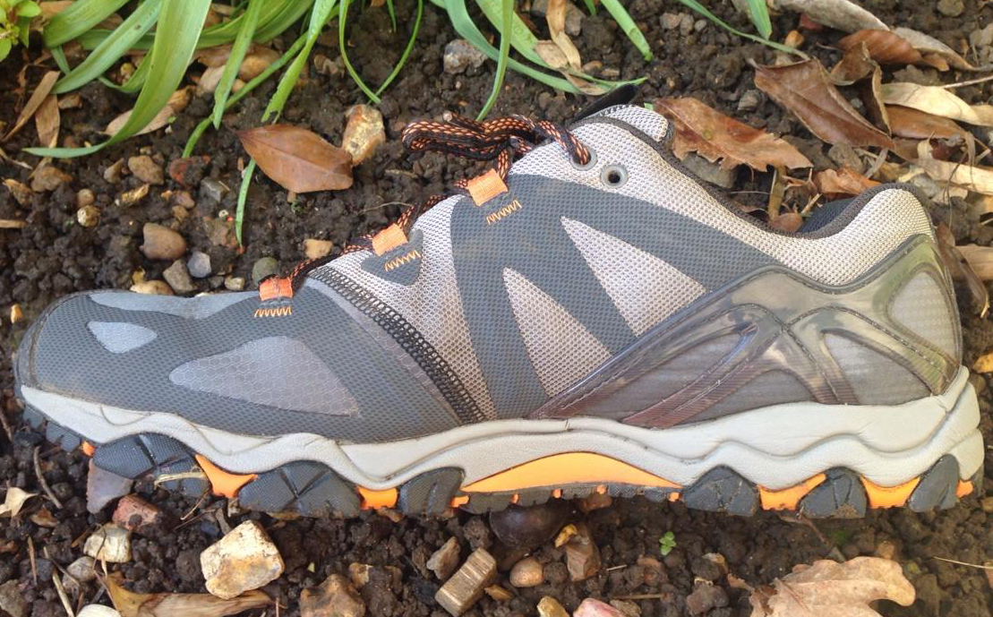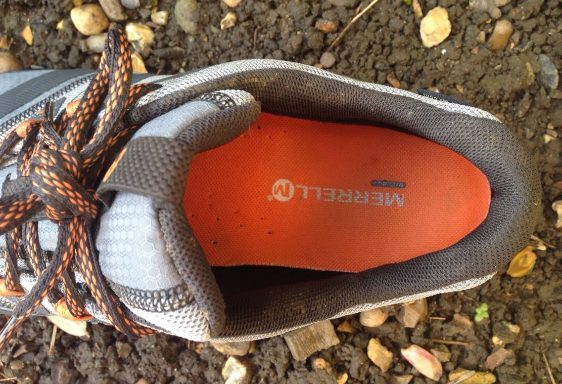 On first look it’s a very stylish walking shoe with a low cut trainer-like design and the mesh and synthetic upper, with unusual styling – clock that central stitched seam – gives them a fashionable and very distinctive outer shell, something that Merrell is well known for. That sleek design is reflected in an impressively low weight, around 680g per pair or just 340g for each shoe.