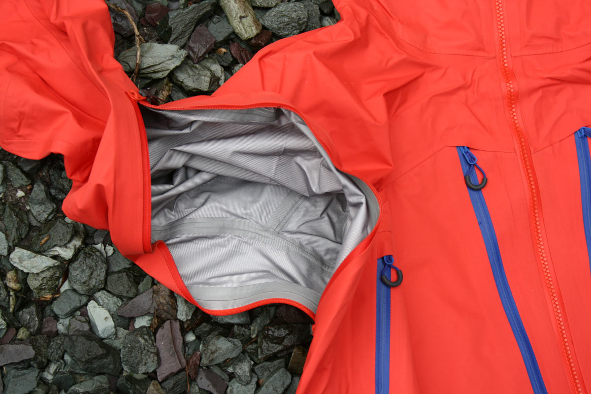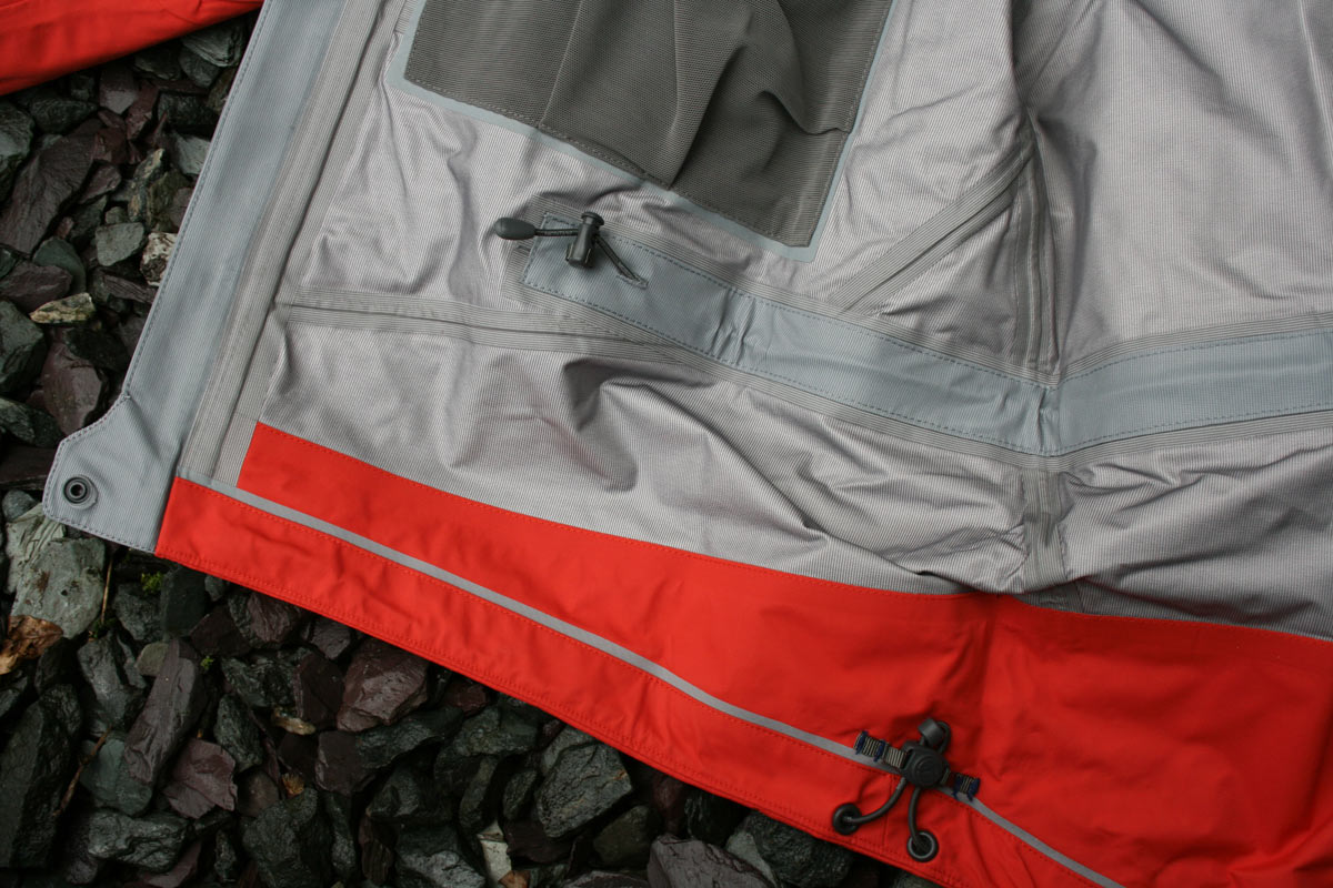 There are pit-zips too, something that’s not overly common on eVent jackets with their impressive breathability plus not only an adjustable shock-corded hem, but an additional 3/4 waist cord to snug things in around, well, the upper butt really. The idea is a neater fit sat under harnesses and packs.