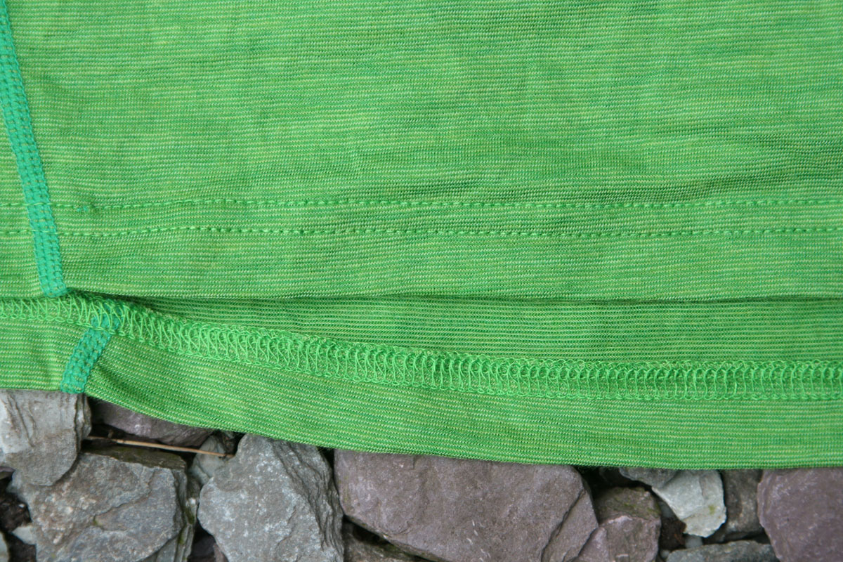 It’s still not as good as a pure synthetic for wicking we think. A post-outing sweat-check showed it was mostly dry but where perspiration had pooled under a light hydration pack and on the chest, it was pretty well soaked out. Interestingly the wetness was quite localised rather than having spread across the fabric more widely. It also took a fair while to dry out once hung up, again we’d say better than merino, but slower than a pure synthetic.
